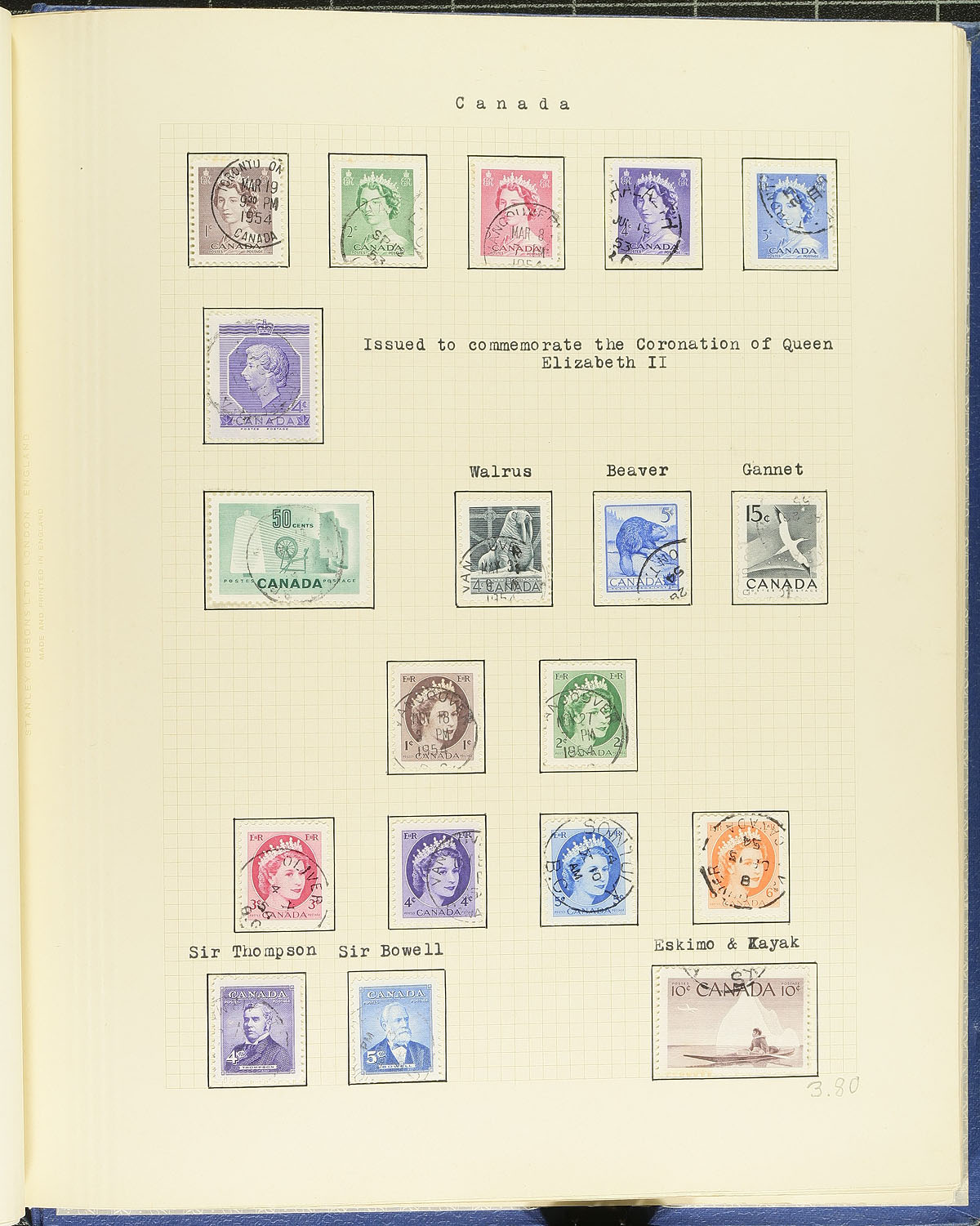 U-Haul box with seven collections, or partial collections in an assortment of binders and albums. Mostly used, going back to the Small Queen era and running into the 1990's, this group offers the chance for cancel and variety hunters, collection builders and people looking to pick up an older album or two in good condition (e.g. Minkus, Lighthouse). A few thousand stamps, lots of catalogue value and some duplication. Overall condition looks to be pretty good. Many of these albums were once individual auction lots (and haven’t been touched since). Estimate =
