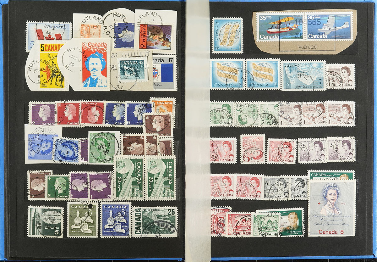 U-Haul box with seven collections, or partial collections in an assortment of binders and albums. Mostly used, going back to the Small Queen era and running into the 1990's, this group offers the chance for cancel and variety hunters, collection builders and people looking to pick up an older album or two in good condition (e.g. Minkus, Lighthouse). A few thousand stamps, lots of catalogue value and some duplication. Overall condition looks to be pretty good. Many of these albums were once individual auction lots (and haven’t been touched since). Estimate =