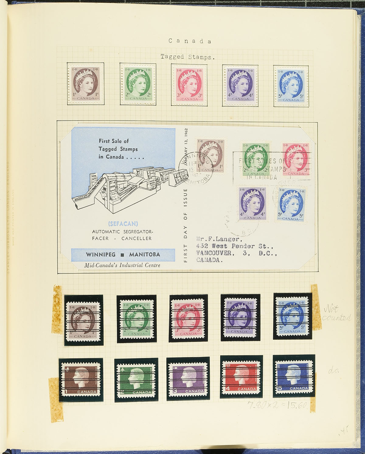 U-Haul box with seven collections, or partial collections in an assortment of binders and albums. Mostly used, going back to the Small Queen era and running into the 1990's, this group offers the chance for cancel and variety hunters, collection builders and people looking to pick up an older album or two in good condition (e.g. Minkus, Lighthouse). A few thousand stamps, lots of catalogue value and some duplication. Overall condition looks to be pretty good. Many of these albums were once individual auction lots (and haven’t been touched since). Estimate =