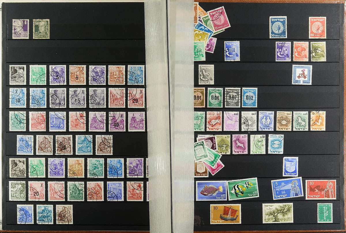 U-Haul box filled with an assortment of general and one country collections in stockbooks, albums and on Vario and Hagner pages. Hungary, Italy, Poland, Russia, Turkey ("back of the book", strength in Cyprus - nice pages but sparse), modern USA, three Harris worldwide albums, Argentina (Schaubek album to 1963) plus some loose booklets and a bundle of weird imperf material (mostly African). Pickers and resellers delight! Estimate =