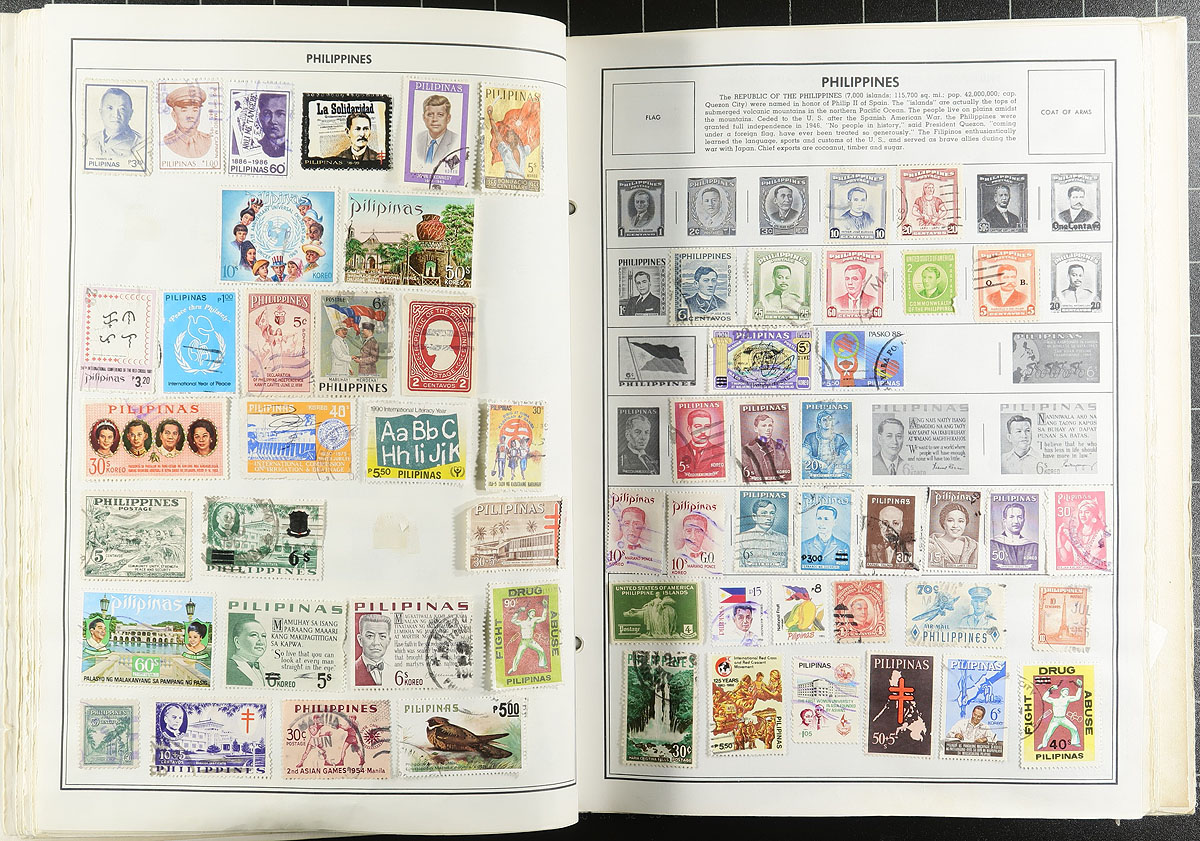 U-Haul box filled with an assortment of general and one country collections in stockbooks, albums and on Vario and Hagner pages. Hungary, Italy, Poland, Russia, Turkey ("back of the book", strength in Cyprus - nice pages but sparse), modern USA, three Harris worldwide albums, Argentina (Schaubek album to 1963) plus some loose booklets and a bundle of weird imperf material (mostly African). Pickers and resellers delight! Estimate =
