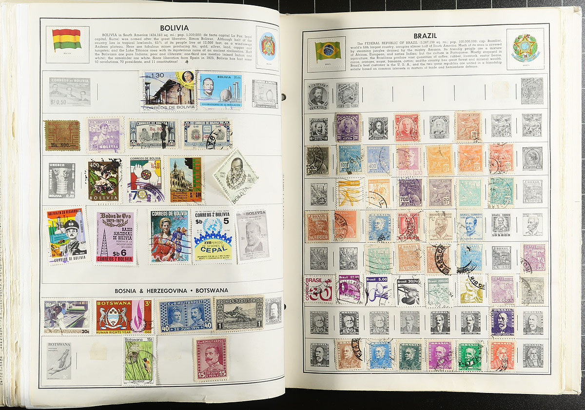 U-Haul box filled with an assortment of general and one country collections in stockbooks, albums and on Vario and Hagner pages. Hungary, Italy, Poland, Russia, Turkey ("back of the book", strength in Cyprus - nice pages but sparse), modern USA, three Harris worldwide albums, Argentina (Schaubek album to 1963) plus some loose booklets and a bundle of weird imperf material (mostly African). Pickers and resellers delight! Estimate =