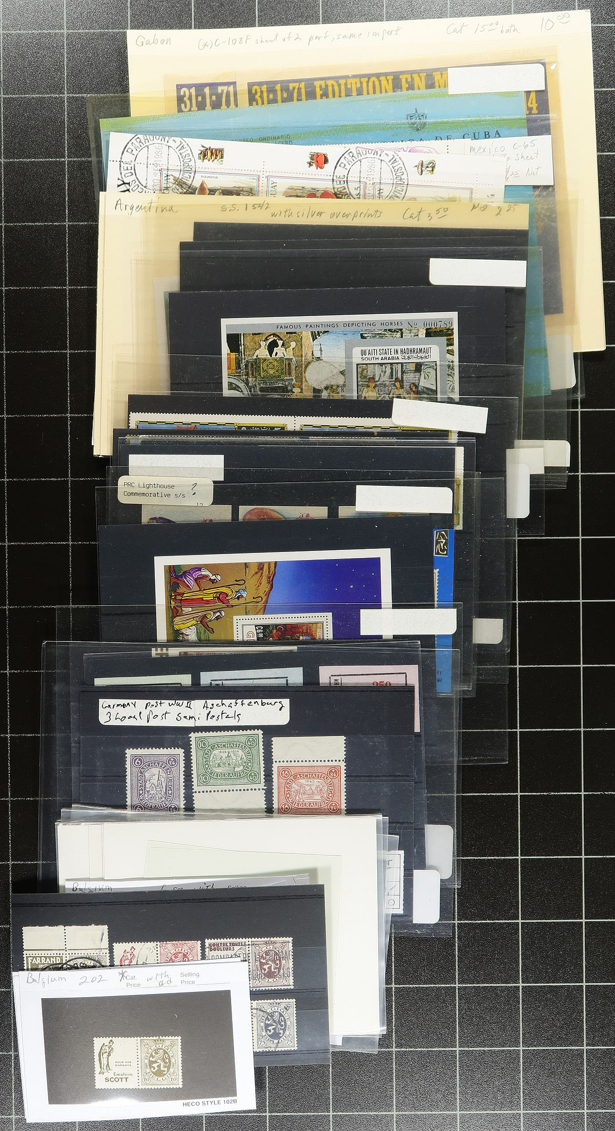 U-Haul box filled with an assortment of general and one country collections in stockbooks, albums and on Vario and Hagner pages. Hungary, Italy, Poland, Russia, Turkey ("back of the book", strength in Cyprus - nice pages but sparse), modern USA, three Harris worldwide albums, Argentina (Schaubek album to 1963) plus some loose booklets and a bundle of weird imperf material (mostly African). Pickers and resellers delight! Estimate =
