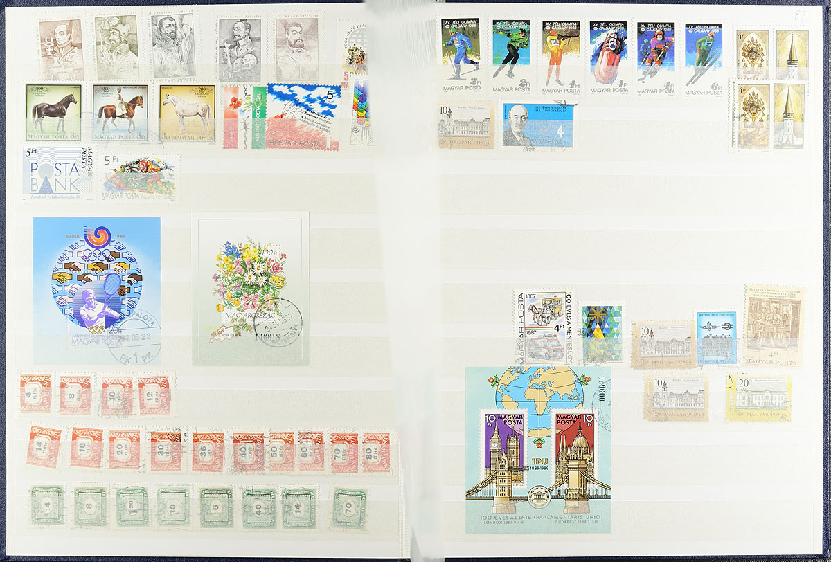 U-Haul box filled with an assortment of general and one country collections in stockbooks, albums and on Vario and Hagner pages. Hungary, Italy, Poland, Russia, Turkey ("back of the book", strength in Cyprus - nice pages but sparse), modern USA, three Harris worldwide albums, Argentina (Schaubek album to 1963) plus some loose booklets and a bundle of weird imperf material (mostly African). Pickers and resellers delight! Estimate =