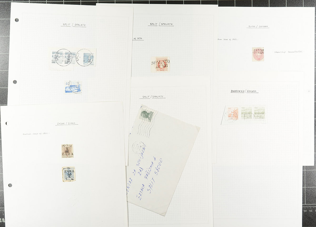 Bankers box of albums and loose pages. Noted some nice southern Africa (e.g. Botswana), a Minkus Supreme binder full of middle eastern "Sand Dune" issues with their usual topical appeal, with more Yemen, and then a series of loose pages, often one page per subject or country, with USA, British Commonwealth (saw a page with some nice KGV Sierra Leone town cancels). Finishes with a sparsely populated 32-page stockbook which you can use to sort this all out. Estimate =