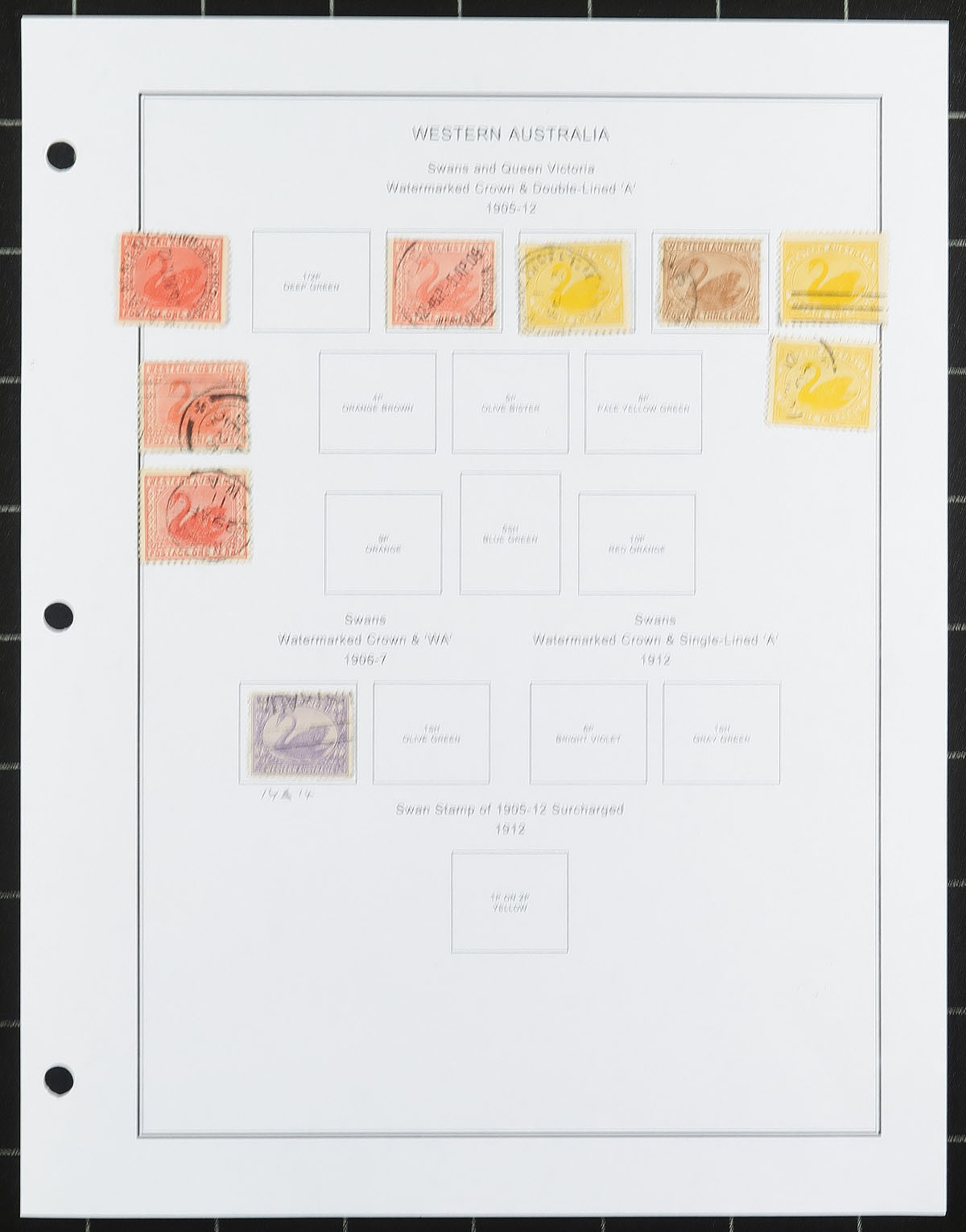 Some assembly is required for this collection. Comes with a couple of sets of computer-generated pages for all six stamp-issuing states (there are some stamps on one set, the other is completely empty). To help you fill these pages are several groups of over 300 stamps from a number of sources. Includes some higher values, lots of nice cancels and a quartet of various "Specimen" overprints. Perfect to help you develop your expertise. Estimate =