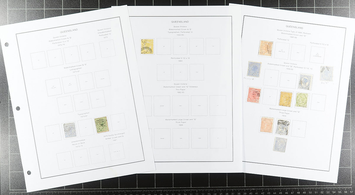 Some assembly is required for this collection. Comes with a couple of sets of computer-generated pages for all six stamp-issuing states (there are some stamps on one set, the other is completely empty). To help you fill these pages are several groups of over 300 stamps from a number of sources. Includes some higher values, lots of nice cancels and a quartet of various "Specimen" overprints. Perfect to help you develop your expertise. Estimate =
