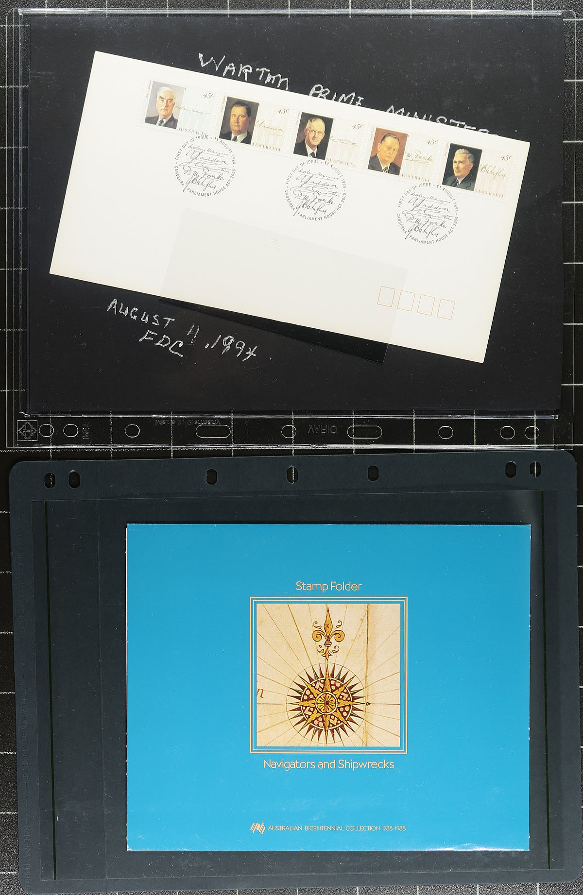 Mint morass in a binder. There are some earlier, such as a dozen fresh looking King George V "Heads" to 1/4, and a trio of green and red postage dues. The original decimal Explorers are here (missing the two values that were issued later), and a handful of modern "Specimen" overprints. There is a hit-or-miss offering of 1930’s-2000 issues (including some 1980's Antarctic Territories (AAT) and a group of 2000's WWII/Victoria Cross issues. Lots of catalogue value here, and lots of face value. The later material appears to all be never hinged. Estimate =