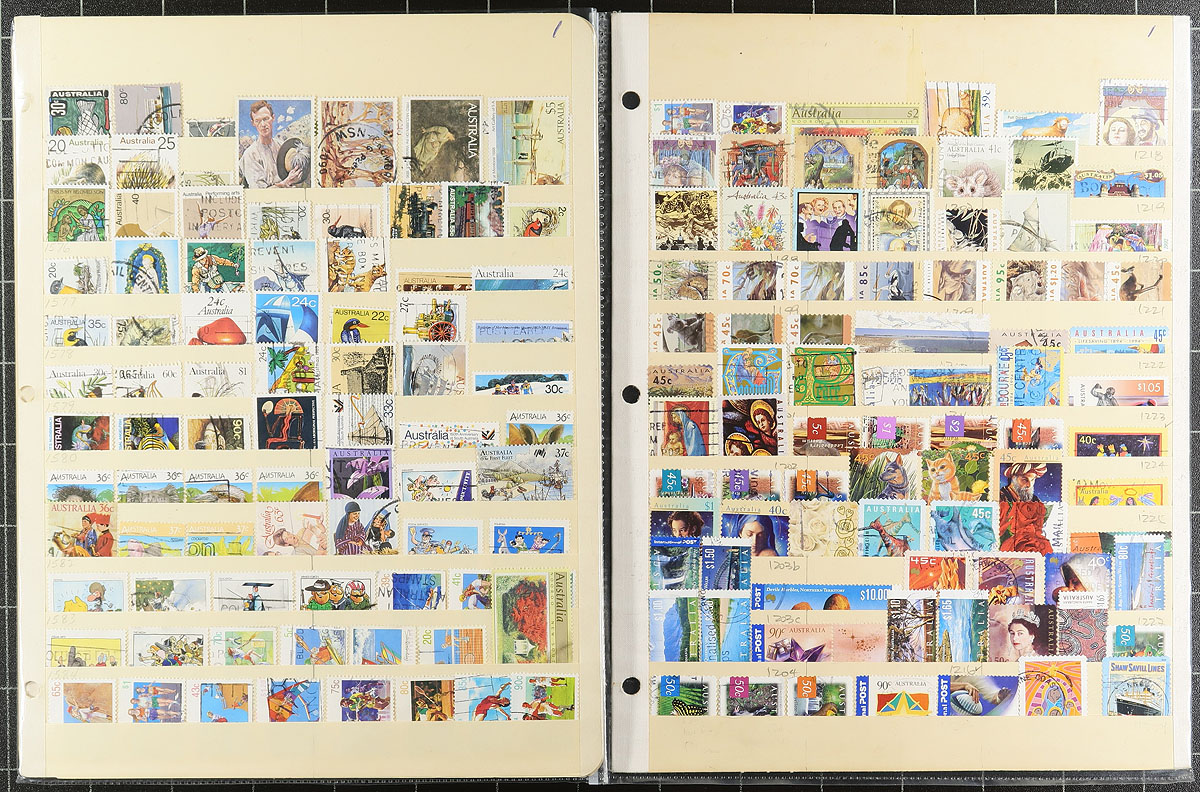 A handful of nearly a century of used Australia on pages and a few cards. Didn’t see any ‘Roos, but there are lots of King George V "Heads" (including a quintet of "OS" overprints), followed by fairly steady coverage from the 1930's right up to 2017. Because this material is from a variety of sources, some overlap and gaps can be expected, with some minor faults. The various owners’ recent catalogue values total over US$1500.00. Estimate =
