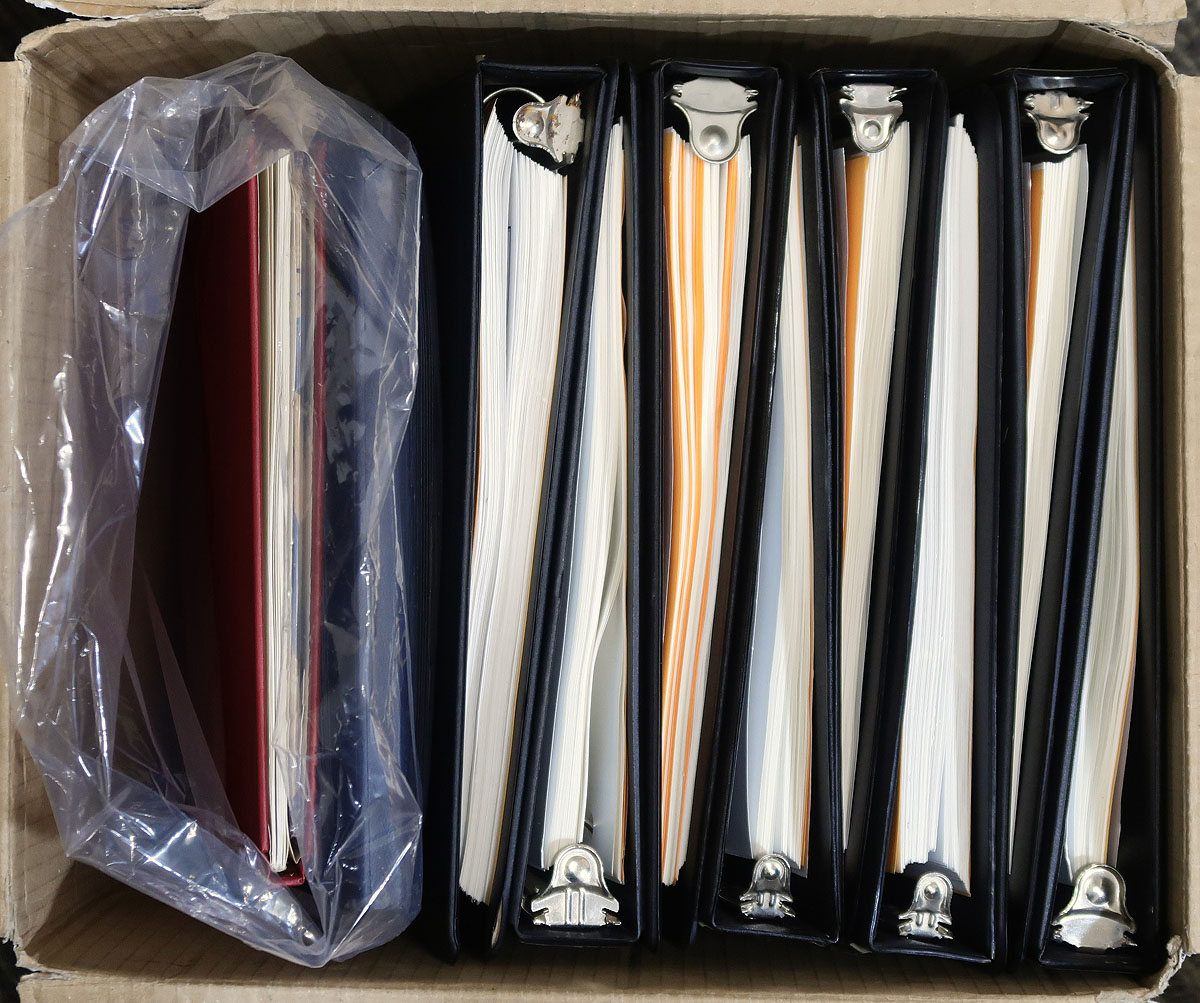 Eight binders of computer-generated pages up to 2010 (a few stamps in the first volume), plus a bundle of mint and used on stockpages and cards plus a 1984 and 1985 year set. A cheap way to get a more recent album with some material to get you started. Estimate =