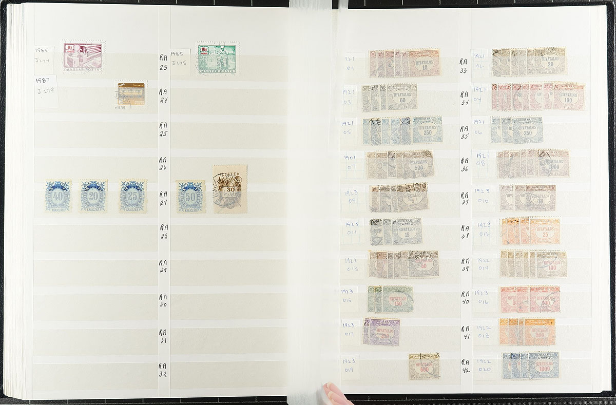A two stockbook accumulation of mint and CTO regular issues from 1971-1987, in quantities of up to 3 of a type plus lots of souvenir sheets. There is an extensive section of "back of the book" (from all eras) with semi-postals, airmails, postage dues, official, newspaper, parcel post and a selection of "occupation" overprints. Two 48-page Uni-Safe stock books (one had several pages removed). Estimate =