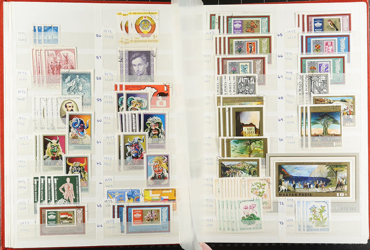 A two stockbook accumulation of mint and CTO regular issues from 1971-1987, in quantities of up to 3 of a type plus lots of souvenir sheets. There is an extensive section of "back of the book" (from all eras) with semi-postals, airmails, postage dues, official, newspaper, parcel post and a selection of "occupation" overprints. Two 48-page Uni-Safe stock books (one had several pages removed). Estimate =