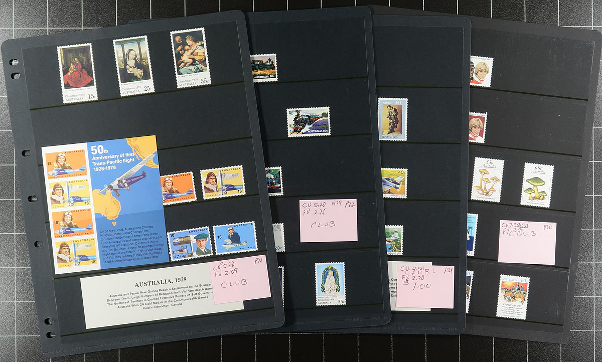 Very well-organized collection of mint Never Hinged commemoratives ranging between the years 1966 to 1998. Noted some of the better sets and consists of 1,010 stamps and 26 souvenir sheets/mini-sheets. All housed on 62 Hagner pages, 5 single sided pages and 57 double sided. Pages, if new, would cost $200.00, alone. Australian face value AUD$504.52 in Canadian dollars =