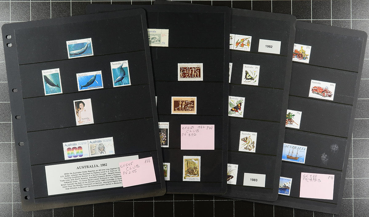 Very well-organized collection of mint Never Hinged commemoratives ranging between the years 1966 to 1998. Noted some of the better sets and consists of 1,010 stamps and 26 souvenir sheets/mini-sheets. All housed on 62 Hagner pages, 5 single sided pages and 57 double sided. Pages, if new, would cost $200.00, alone. Australian face value AUD$504.52 in Canadian dollars =