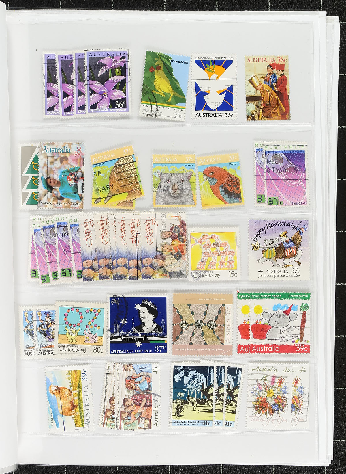 A small bundle of used on pages, the most valuable being from the States, mostly on one chaotic page covering all six states. Some early ‘Roos and King George V "Heads" are supplemented with a scattering of issues to about 2000, including some "back of the book". There is a complete booklet from 1966 with CTO panes and a group of seven railway revenues. The owners’ catalogue value is over US$1200.00. Estimate =