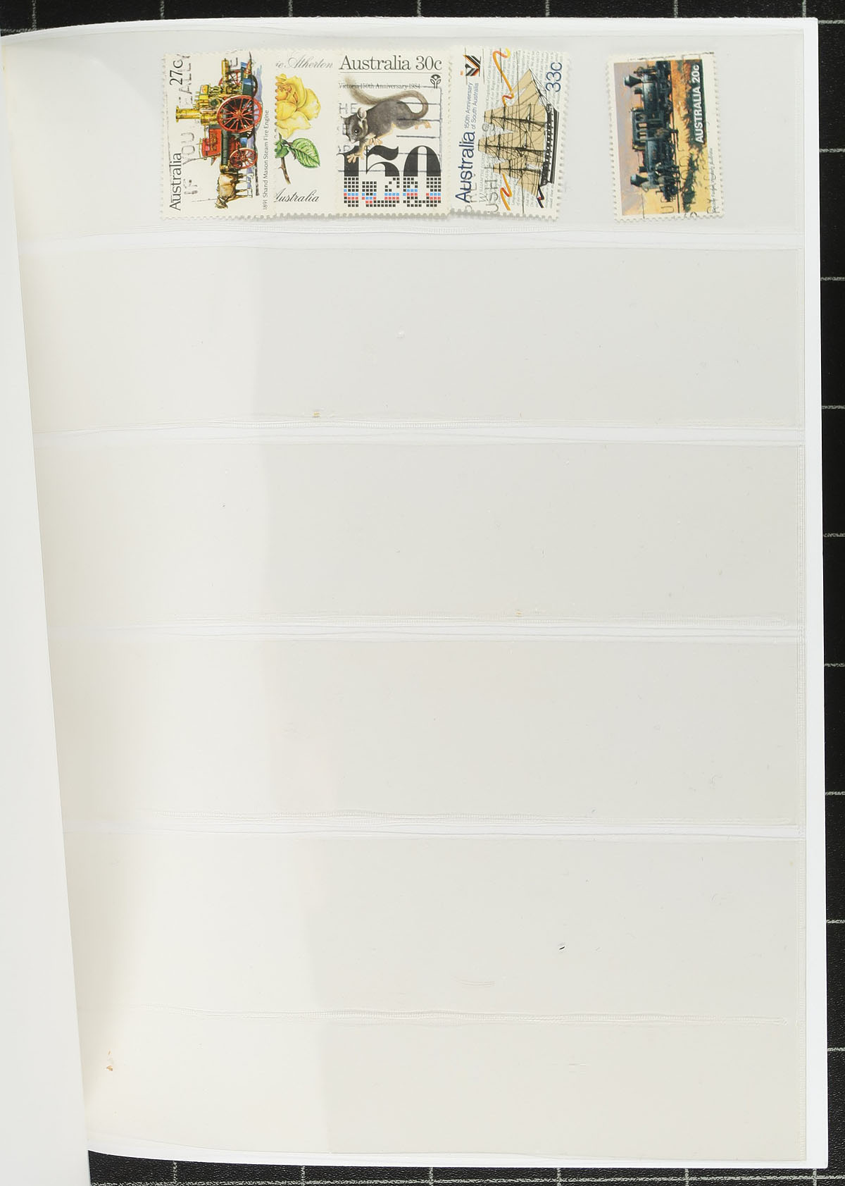 A small bundle of used on pages, the most valuable being from the States, mostly on one chaotic page covering all six states. Some early ‘Roos and King George V "Heads" are supplemented with a scattering of issues to about 2000, including some "back of the book". There is a complete booklet from 1966 with CTO panes and a group of seven railway revenues. The owners’ catalogue value is over US$1200.00. Estimate =