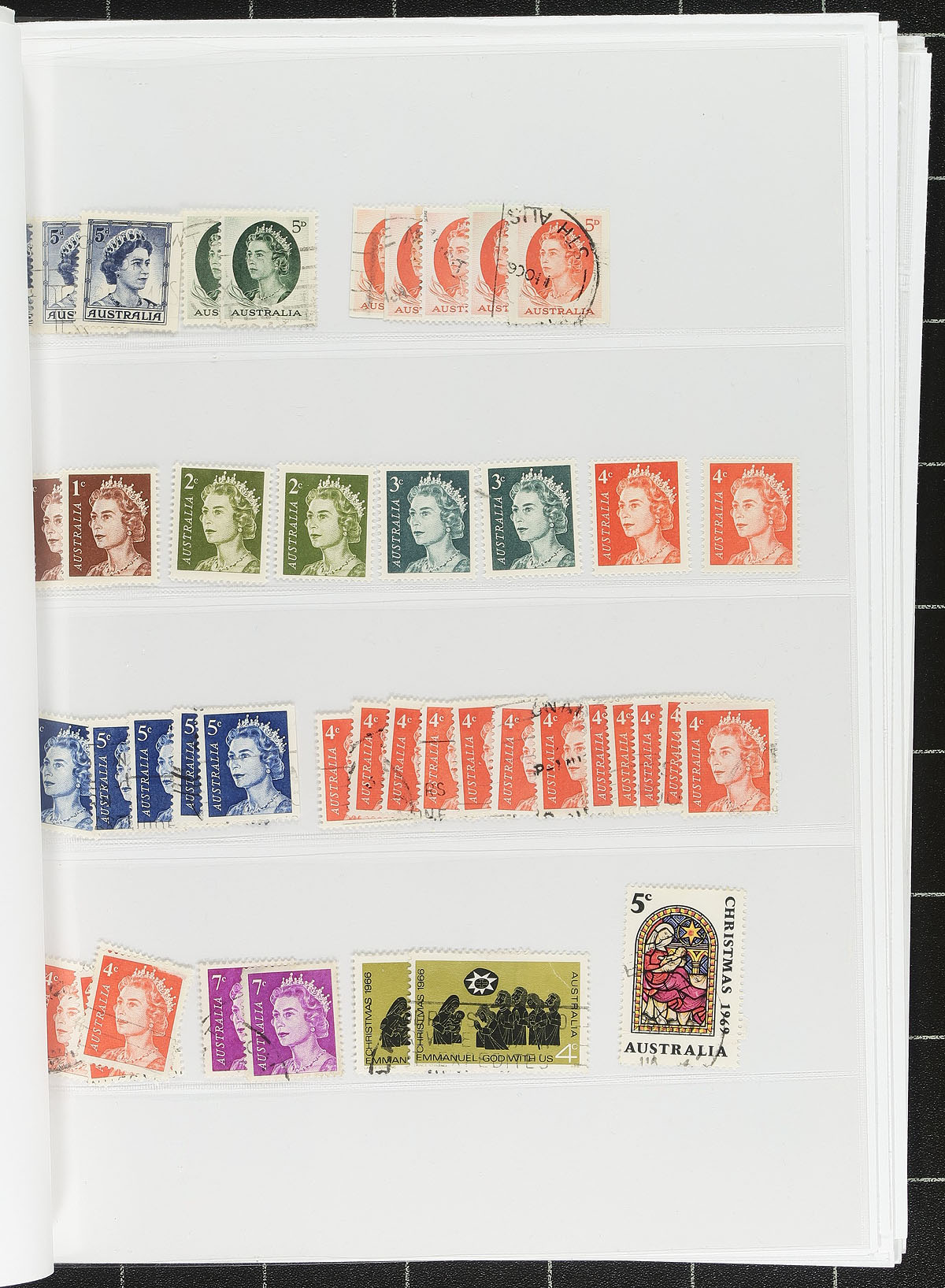 A small bundle of used on pages, the most valuable being from the States, mostly on one chaotic page covering all six states. Some early ‘Roos and King George V "Heads" are supplemented with a scattering of issues to about 2000, including some "back of the book". There is a complete booklet from 1966 with CTO panes and a group of seven railway revenues. The owners’ catalogue value is over US$1200.00. Estimate =
