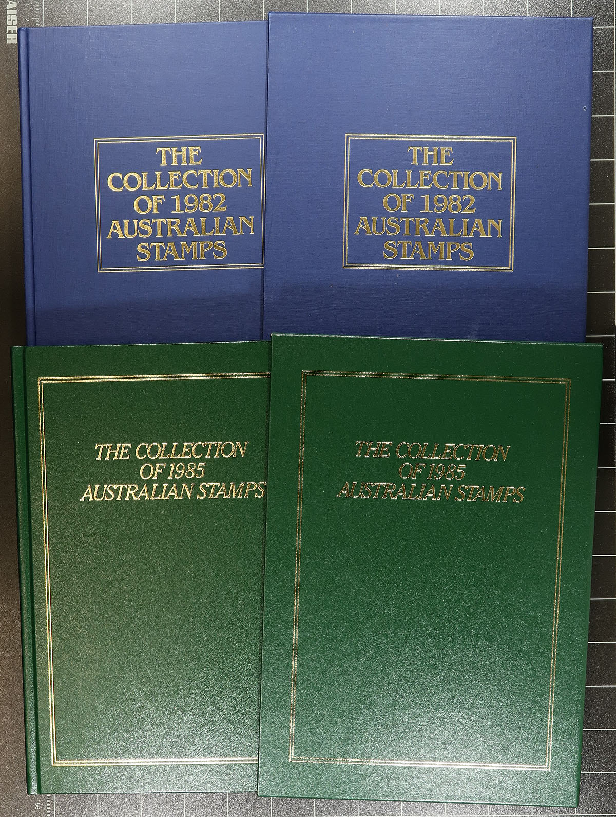 Seven "annual collections" (1982, 1985-88, 1991-1992) and a trio of "Frama, Booklet and Self-Adhesive Collections" (1990-91, 1991-92, 1992-93). Some are unopened, the rest are in good condition (most are in their original sleeves). All have their full complement of stamps. Australian retail A$625.00, indicating a hefty amount of face value. Estimate =