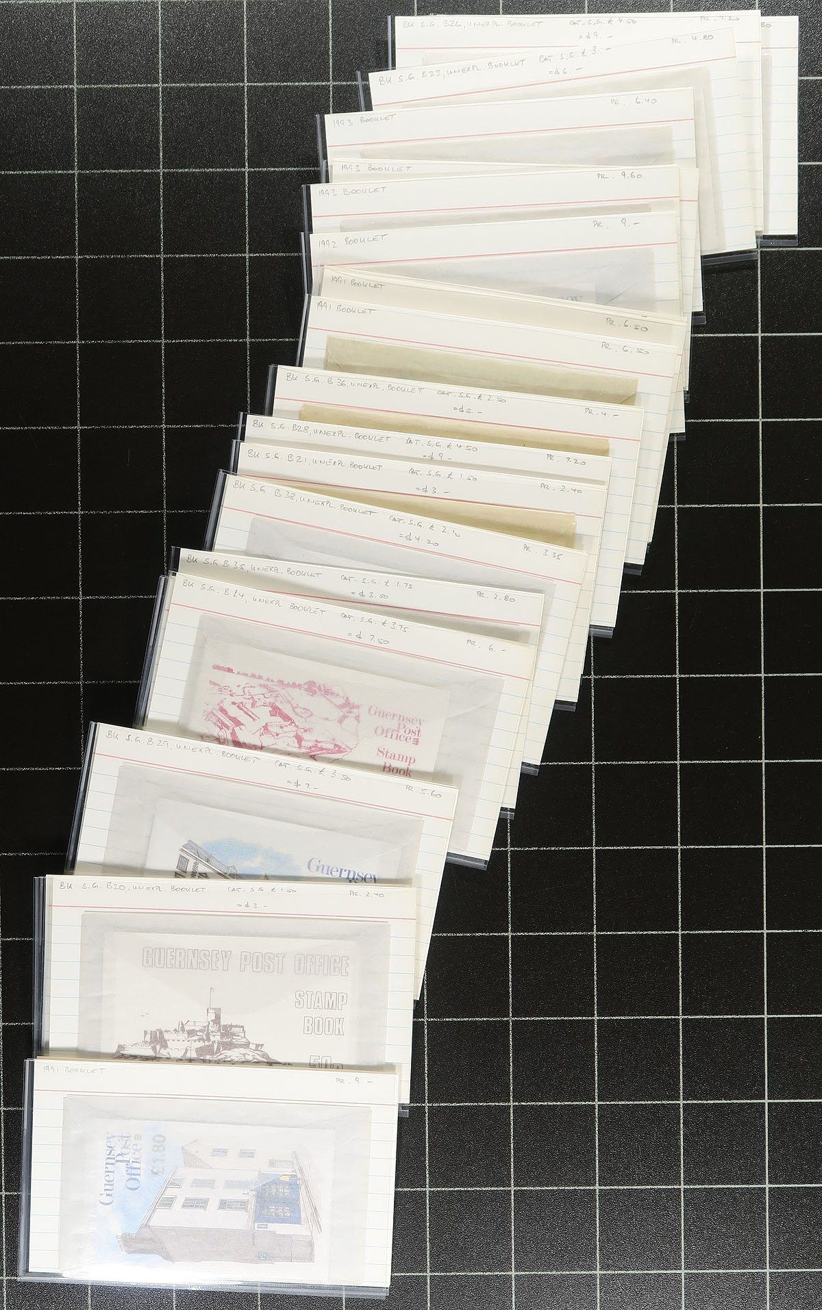 Complete booklet stash of over 130 booklets (possibly complete run) issued between 1969-1993 (Stanley Gibbons #B1-B45) & three from Guernsey. In excellent condition, all are individually sleeved, identified and priced (a few years ago). Light to moderate duplication. Substantial catalogue value, the face value alone is £208.00 in Canadian dollars =