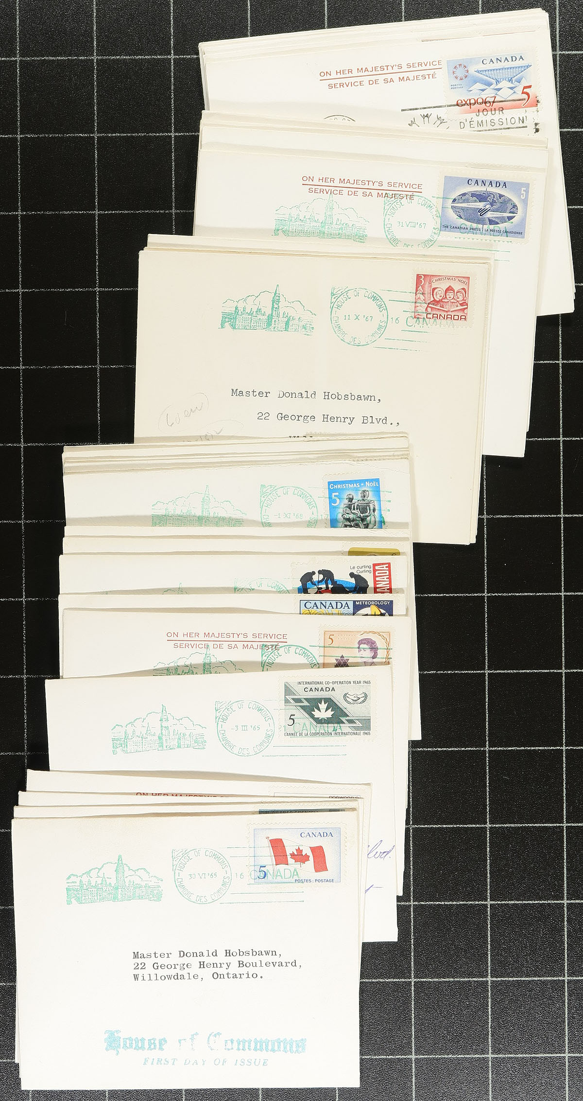 First Day Covers. Private Cachet First Day Cover holding #2: A few hundred majority #8 sized envelopes, all cacheted with about 80% being Rosecraft (1950's-1970's) and several other cachet makers making up the difference (including Colorano "silks", House of Commons and more). An envelope box’s worth. Expect some duplication. Great for the picker looking to make their collection more complete. Estimate =