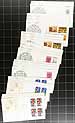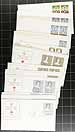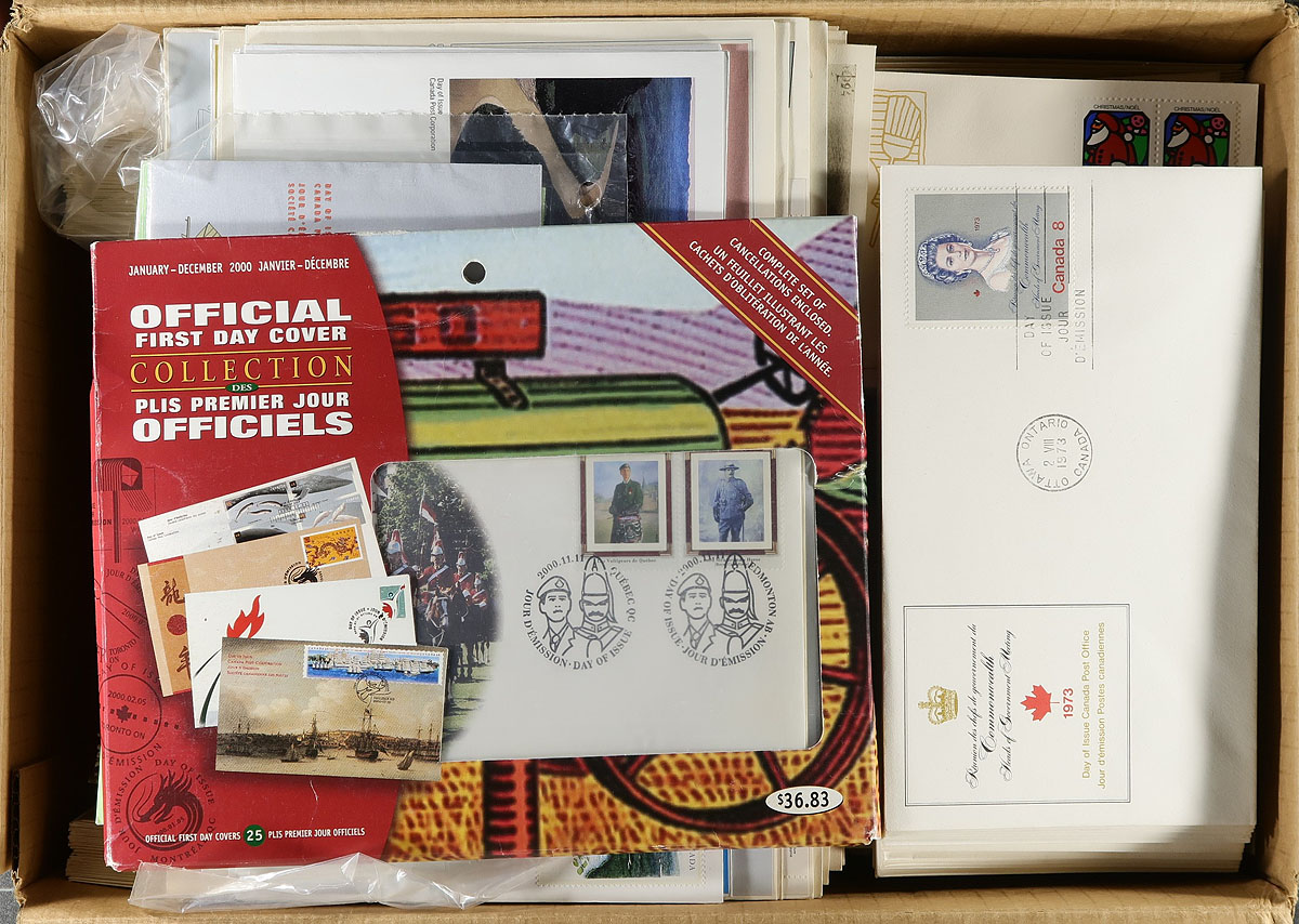 First Day Covers. Canada Post First Day Cover cachet holding #1: A few hundred, standard issue first day covers, with a few larger being for larger plate blocks and souvenir sheets. All with cachet, all are unaddressed and few faults are to be expected. Strength from 1971 to the 1990's, but with a few here and there into the 2000's. Some duplication. Substantial original cost and enormous catalogue value. Estimate =