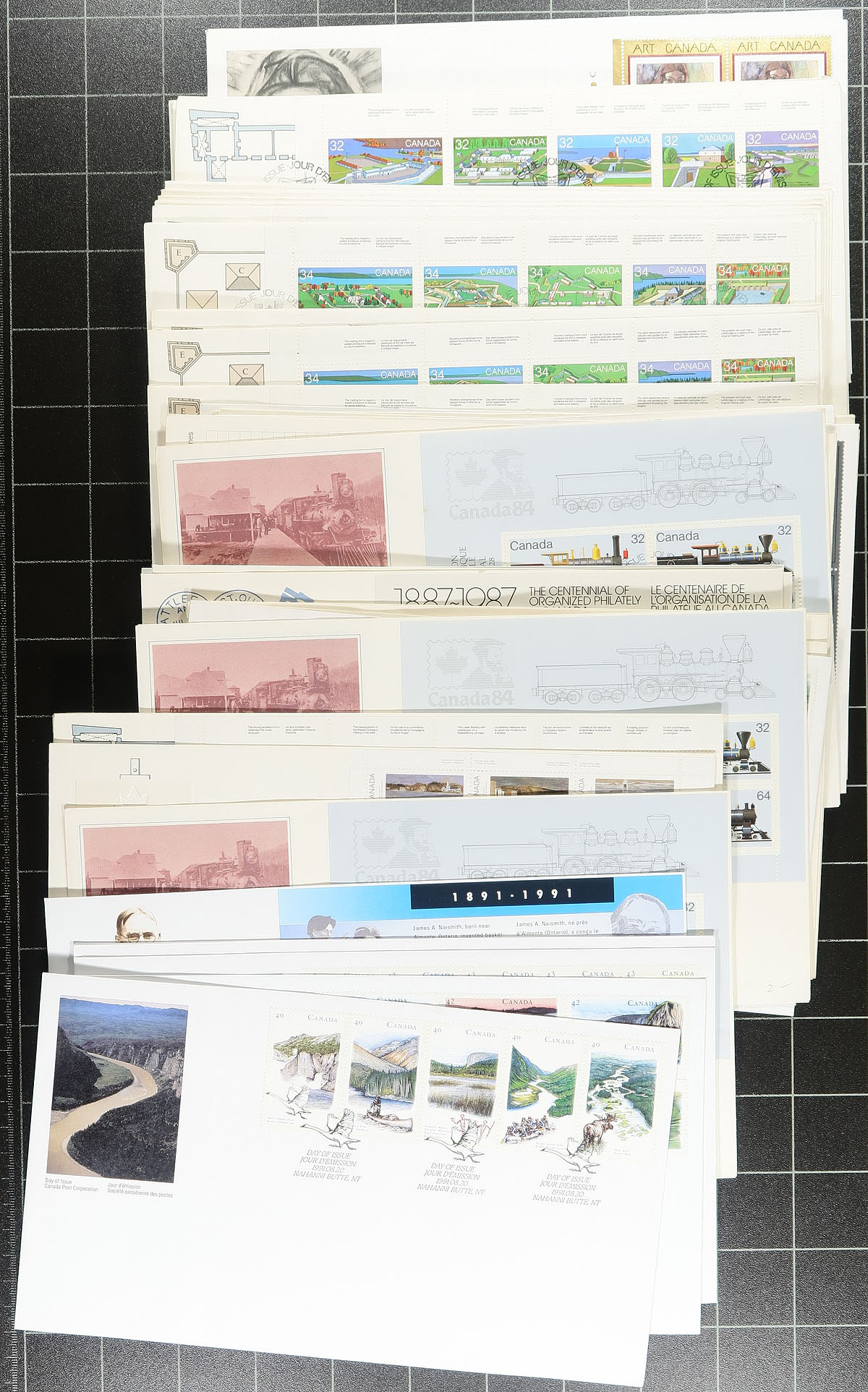 First Day Covers. Canada Post First Day Cover cachet holding #1: A few hundred, standard issue first day covers, with a few larger being for larger plate blocks and souvenir sheets. All with cachet, all are unaddressed and few faults are to be expected. Strength from 1971 to the 1990's, but with a few here and there into the 2000's. Some duplication. Substantial original cost and enormous catalogue value. Estimate =