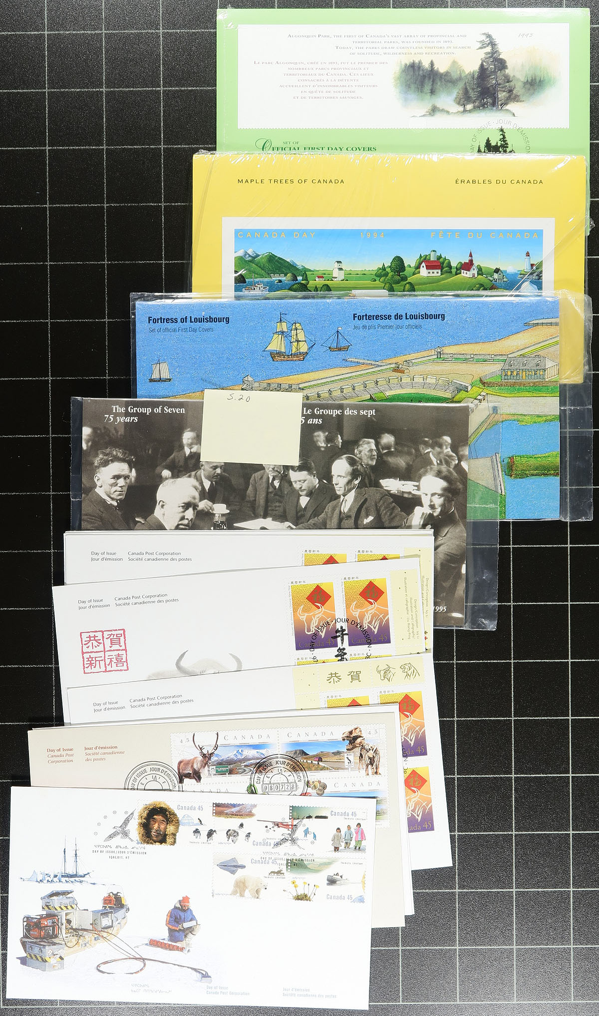 First Day Covers. Canada Post First Day Cover cachet holding #2: A few hundred, standard issue first day covers, with a few larger being for larger plate blocks and souvenir sheets. All with cachet, all are unaddressed and few faults are to be expected. Coverage from 1971 to about 2006, but with substantial coverage of the 1990's-early 2000's. Some duplication. Substantial original cost and enormous catalogue value. Estimate =