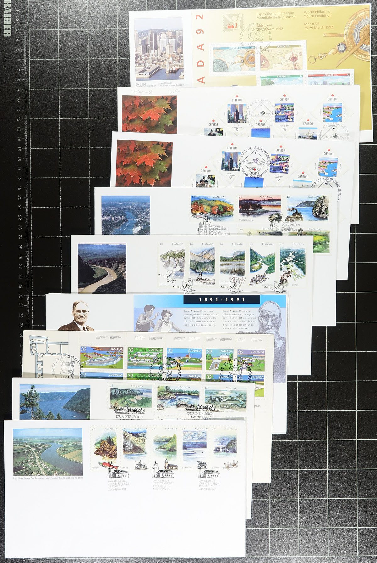 First Day Covers. Canada Post First Day Cover cachet holding #2: A few hundred, standard issue first day covers, with a few larger being for larger plate blocks and souvenir sheets. All with cachet, all are unaddressed and few faults are to be expected. Coverage from 1971 to about 2006, but with substantial coverage of the 1990's-early 2000's. Some duplication. Substantial original cost and enormous catalogue value. Estimate =