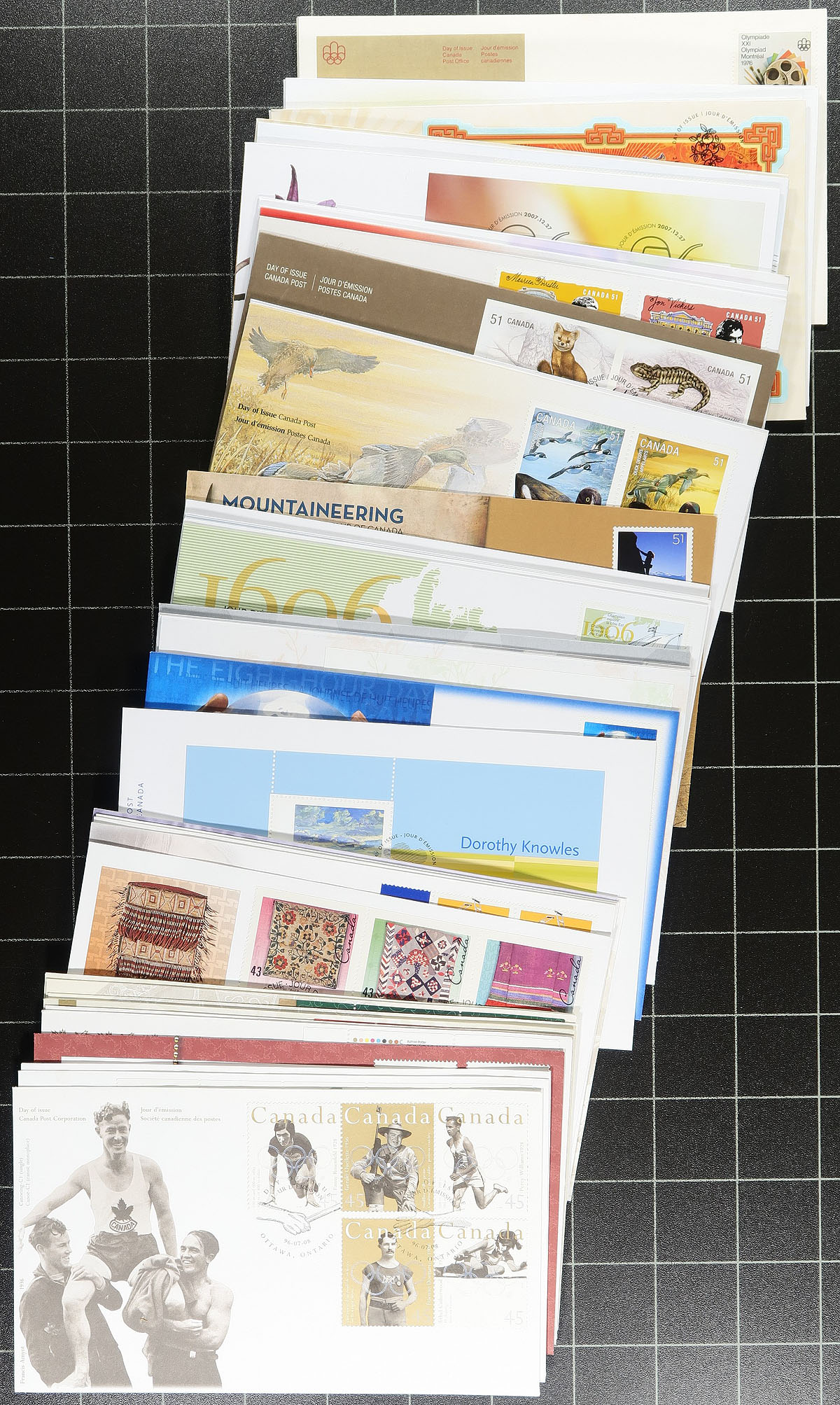 First Day Covers. Canada Post First Day Cover cachet holding #2: A few hundred, standard issue first day covers, with a few larger being for larger plate blocks and souvenir sheets. All with cachet, all are unaddressed and few faults are to be expected. Coverage from 1971 to about 2006, but with substantial coverage of the 1990's-early 2000's. Some duplication. Substantial original cost and enormous catalogue value. Estimate =