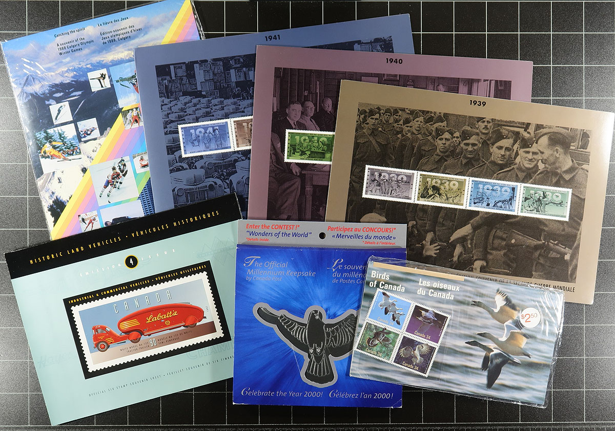 Dealer’s stock of Canada Post souvenir items from the late 1960's to the early 1990's, with albums, panels, cards, folders. Generally good condition, a bit of duplication. All listed in Unitrade. Because of their size and relative value, these aren’t widely stocked and have become more popular as collectors realize the limited quantities that most of these were produced. About a wine box worth. Estimate =