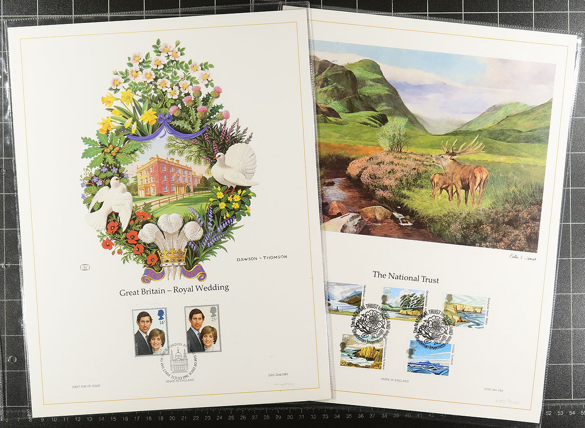 Large sized lithographed prints, with matching stamps and first day cancels. 28 different British panels (1979-1983), plus 5 from Guernsey and 1 from the Isle of Man. Each is housed in a specialty 4-hole plastic pouch. Some of the plastic pages have warped, but only one of the panels is damaged (unrelated to the condition of the plastic). Each is a limited production of 9500. We haven’t seen these catalogued and the lowest prices that we have seen online is $10.00 each. Estimate =