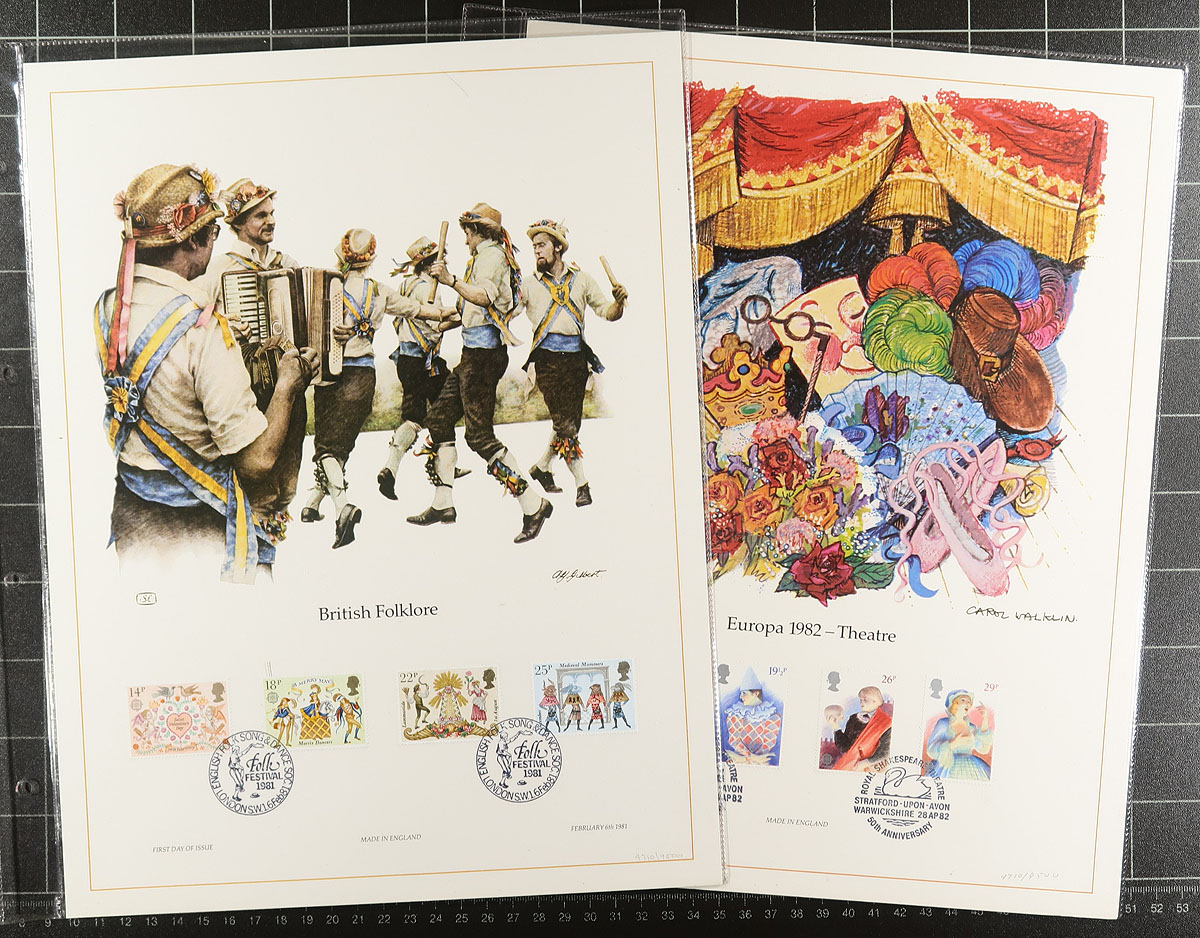 Large sized lithographed prints, with matching stamps and first day cancels. 28 different British panels (1979-1983), plus 5 from Guernsey and 1 from the Isle of Man. Each is housed in a specialty 4-hole plastic pouch. Some of the plastic pages have warped, but only one of the panels is damaged (unrelated to the condition of the plastic). Each is a limited production of 9500. We haven’t seen these catalogued and the lowest prices that we have seen online is $10.00 each. Estimate =