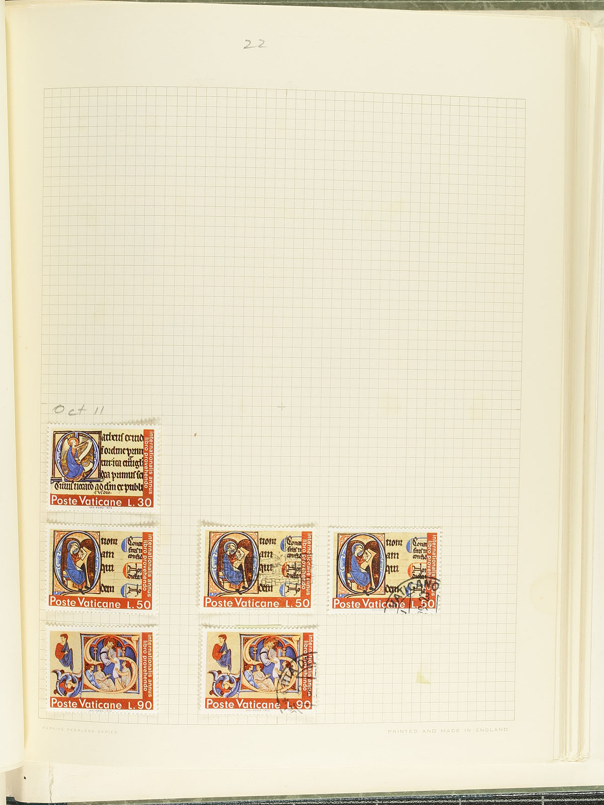 A bundle of assorted stamps and covers. A mint, mounted collection in a springback binder covers 1949-1983. There is a good-sized bag of loose mostly used stamps, both on and off paper. The covers include the usual philatelic offerings, plus some better (silk cachets on FDC, registered covers and more commercial mail than normally seen). The last section is a group from the "Order of Malta" with covers and souvenir sheets, most of the first 60 issues from this non-Scott listed "adjunct" issuer (European catalogue value over €225.00). Not your usual working lot of Vatican. Estimate =