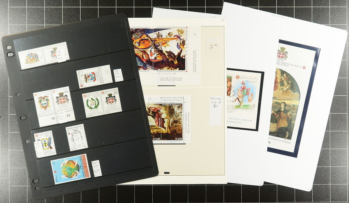 A bundle of assorted stamps and covers. A mint, mounted collection in a springback binder covers 1949-1983. There is a good-sized bag of loose mostly used stamps, both on and off paper. The covers include the usual philatelic offerings, plus some better (silk cachets on FDC, registered covers and more commercial mail than normally seen). The last section is a group from the "Order of Malta" with covers and souvenir sheets, most of the first 60 issues from this non-Scott listed "adjunct" issuer (European catalogue value over €225.00). Not your usual working lot of Vatican. Estimate =