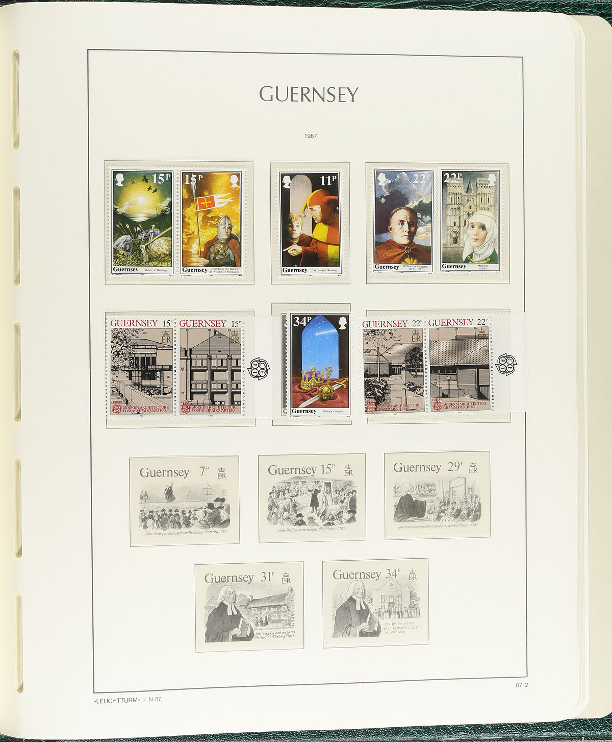 Combination of two collections will make a nearly complete pre-1990 collection. One is in a green Lighthouse binder (needs a bit of repair) with hingeless pages 1941-1990 (retail is about $400.00) with a good range of stamps. The second is a Schaubek album of a similar vintage with 408 stamps and 14 souvenir sheets. Substantial catalogue value. Build your collection and sell the balance to offset your costs! Estimate =