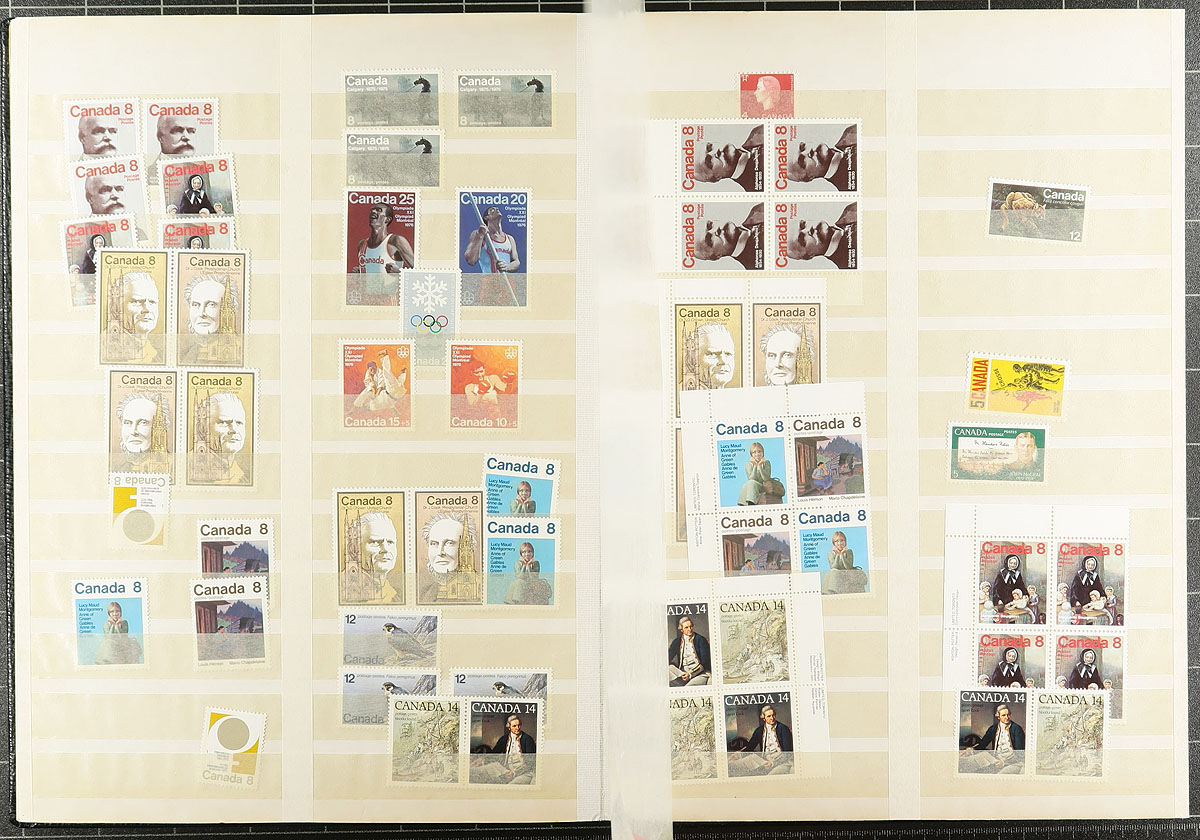 A bundle consisting of the balance of an estate. A bit of everything here, mostly 20th century, with a mix of mint (some is no gum), used, and a number of complete booklets. A couple of handfuls of album pages, some face value from the 4c-8c era (including a few plate blocks) have some value, plus there is some back of the book, a bit of cancel interest, and a smattering of retail cards. Don’t forget the bits of Newfoundland and the Maritime colonies. Estimate =