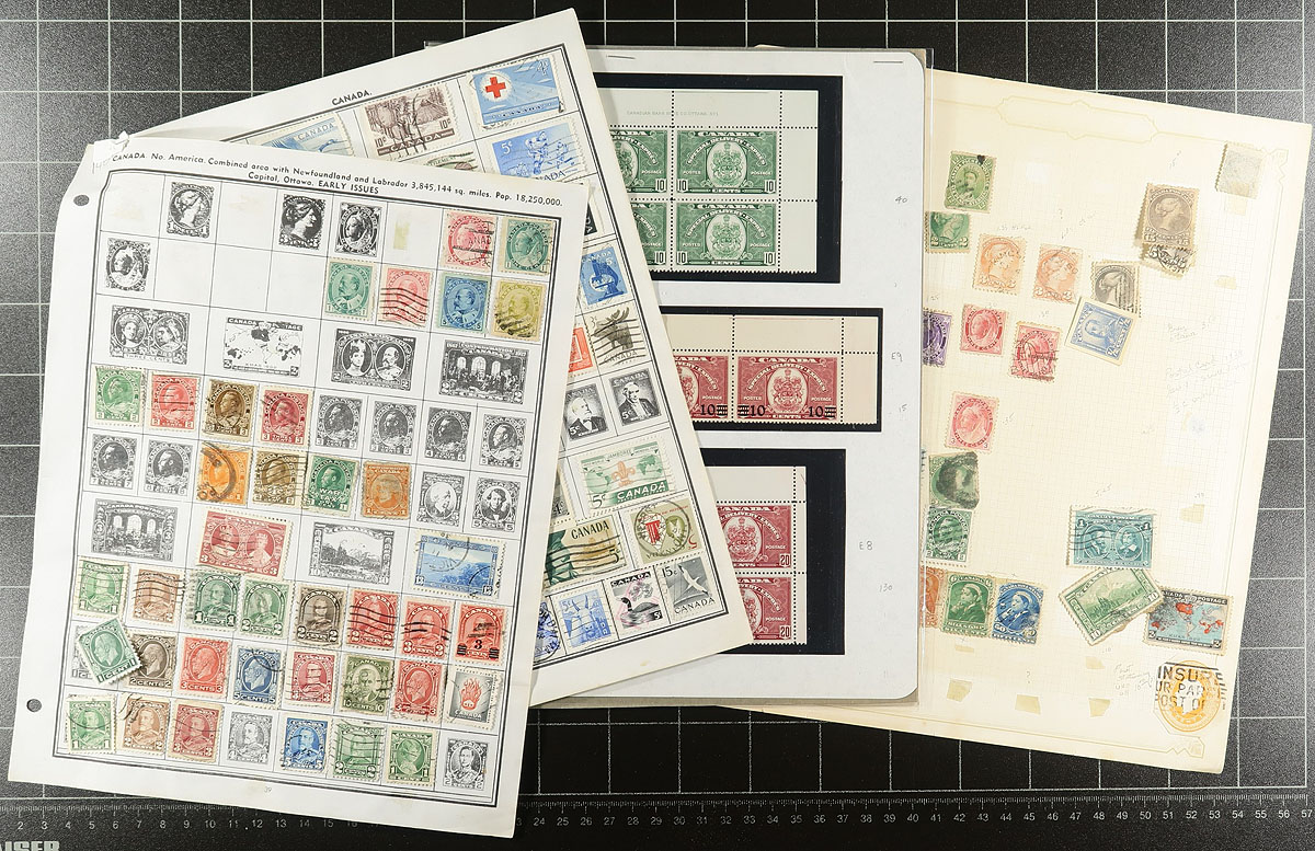 A bundle consisting of the balance of an estate. A bit of everything here, mostly 20th century, with a mix of mint (some is no gum), used, and a number of complete booklets. A couple of handfuls of album pages, some face value from the 4c-8c era (including a few plate blocks) have some value, plus there is some back of the book, a bit of cancel interest, and a smattering of retail cards. Don’t forget the bits of Newfoundland and the Maritime colonies. Estimate =