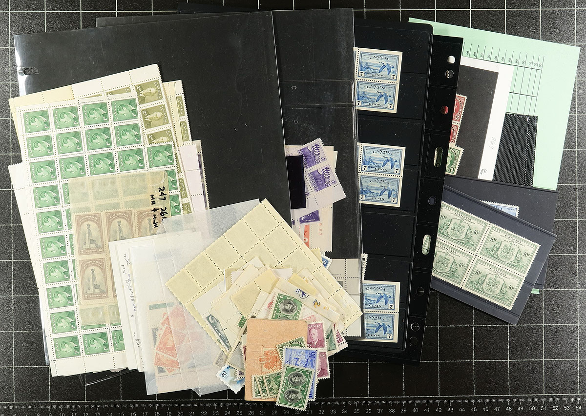 A bundle consisting of the balance of an estate. A bit of everything here, mostly 20th century, with a mix of mint (some is no gum), used, and a number of complete booklets. A couple of handfuls of album pages, some face value from the 4c-8c era (including a few plate blocks) have some value, plus there is some back of the book, a bit of cancel interest, and a smattering of retail cards. Don’t forget the bits of Newfoundland and the Maritime colonies. Estimate =