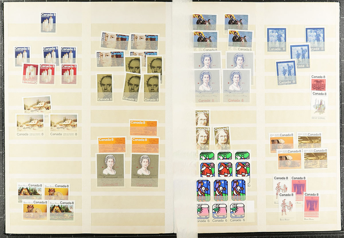 A bundle consisting of the balance of an estate. A bit of everything here, mostly 20th century, with a mix of mint (some is no gum), used, and a number of complete booklets. A couple of handfuls of album pages, some face value from the 4c-8c era (including a few plate blocks) have some value, plus there is some back of the book, a bit of cancel interest, and a smattering of retail cards. Don’t forget the bits of Newfoundland and the Maritime colonies. Estimate =
