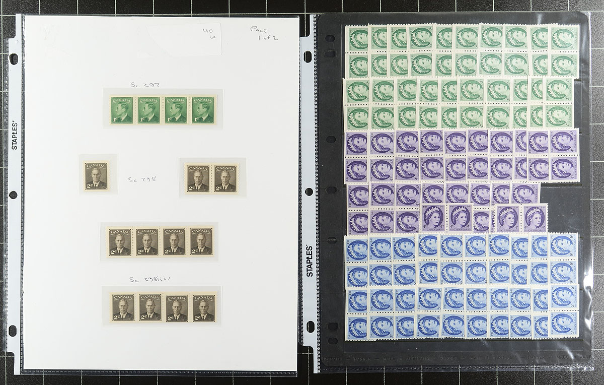 Mostly mint coil accumulation from the Admirals to the Cameos, including a good range of singles, a number of KGVI "War" issue, a nice selection of KGVI portraits including a "jump strip" and a starter strip pair on #300. Wholesale quantities of the QEII "Wilding" trio and finishes with a card of "Cameo" issues. The catalogue value on these adds up surprisingly quickly. Estimate =