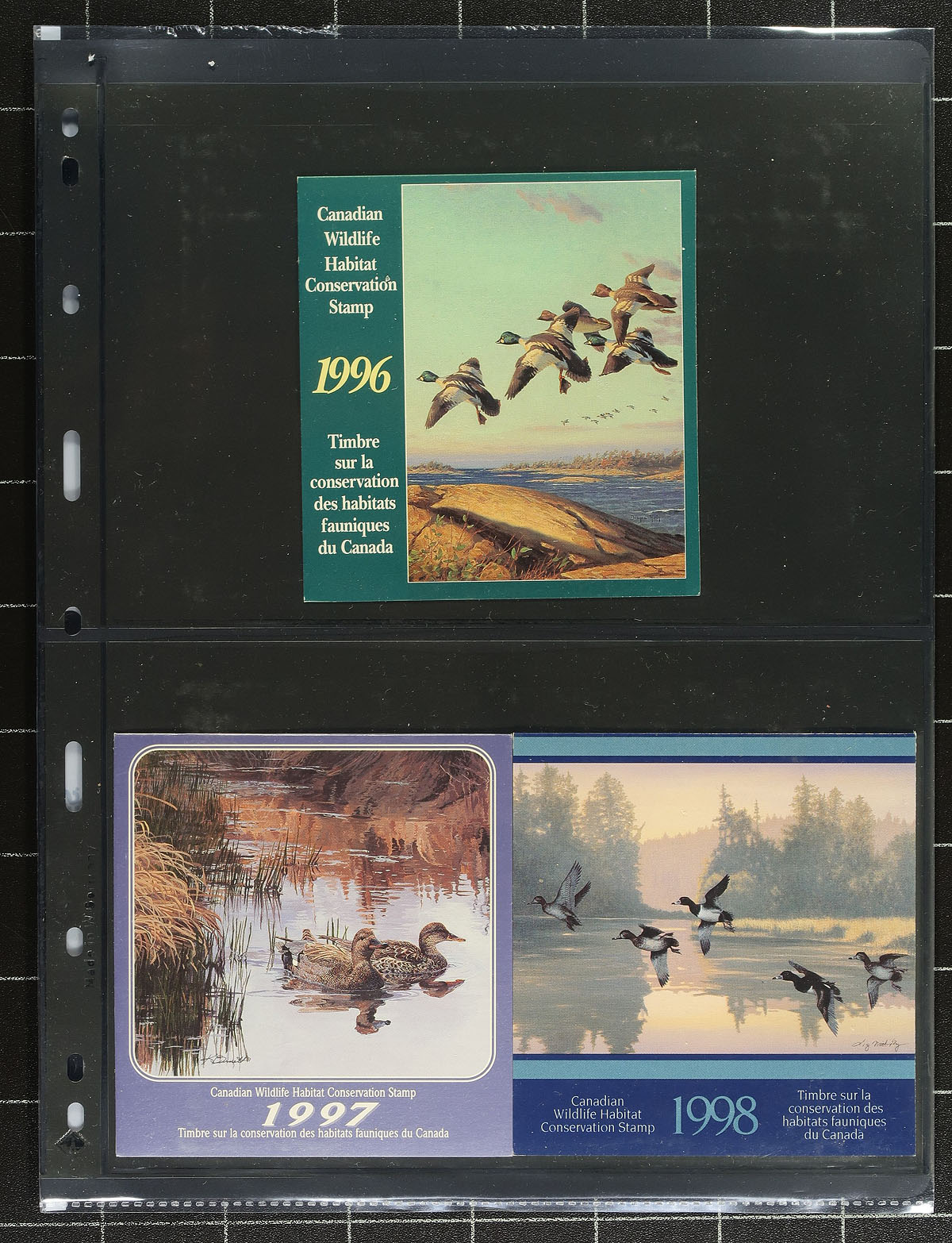 Not your usual animal revenue group. There awesome duck stamps, with a trio from Quebec (#QW1, 2, 13), and an octet from Canada (#FWH1-5, FWH12-14), these catalogue $390.00. There is a small group with the six "Prairie Conservation" birds, a Winnipeg Canada Goose, three fish license stamps, plus one used license, one unused with stamp, and another mint form. Finally, there is a 1987 limited edition print (#938/16,000) of the design for #FWH3 (11th edition Darnell retail (#D-3-print) $250.00)! Estimate =