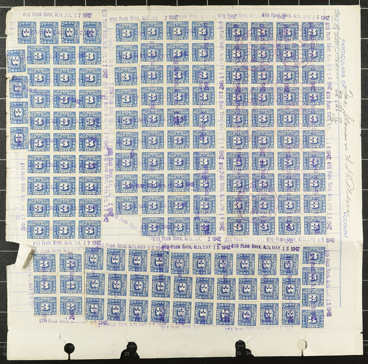 This small group starts with an Ontario Law stamp duo, but is mostly Federal afterwards including a batch of Federal Inspection stamps on "102" cards (cat $337.50), a nice piece with Excise stamps (cat $208.50), a Supreme Court 25c QV 1876 on piece (cat $175.00), plus a UIC booklet with 20 stamps a couple of ledger pages of Excise stamps and a small envelope with unchecked loose issues. Usual mixed condition. Estimate =