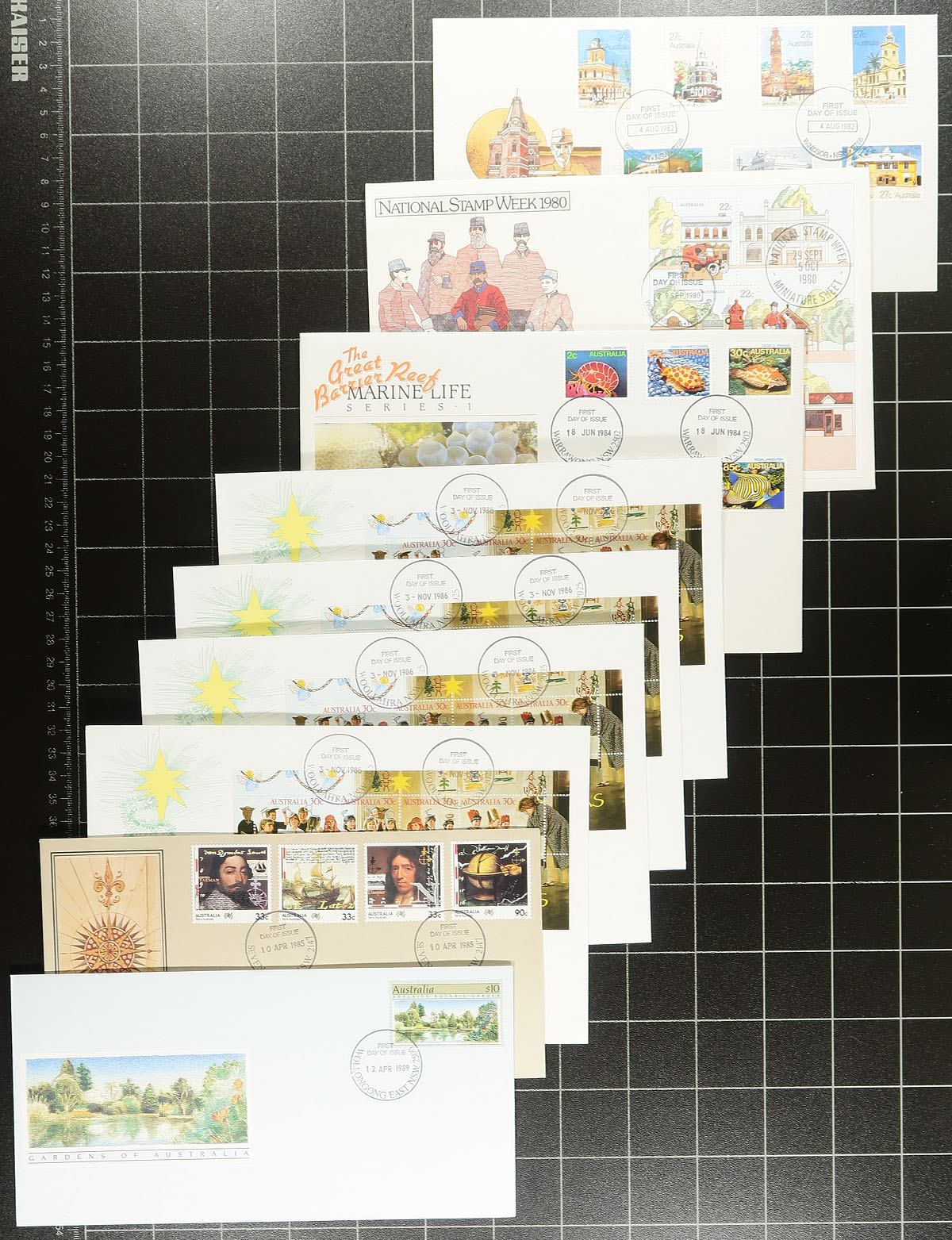 First Day Covers, postal stationery, stationery view cards & commemorative cancel packs, almost all 1970's-1980's. A total of 300+ items, including the six packs of commemorative cancels from the 1988 Brisbane Commonwealth Games (face value A$75.00). The first day covers are all unaddressed with AustraliaPost cachets, face values to $10.00 and some souvenir sheets. The stationery is both mint and first day cancelled. Finishes with four sets of the "Maxi-card" postal card folders (red, blue, black, brown). Lots of original cost here. Estimate =