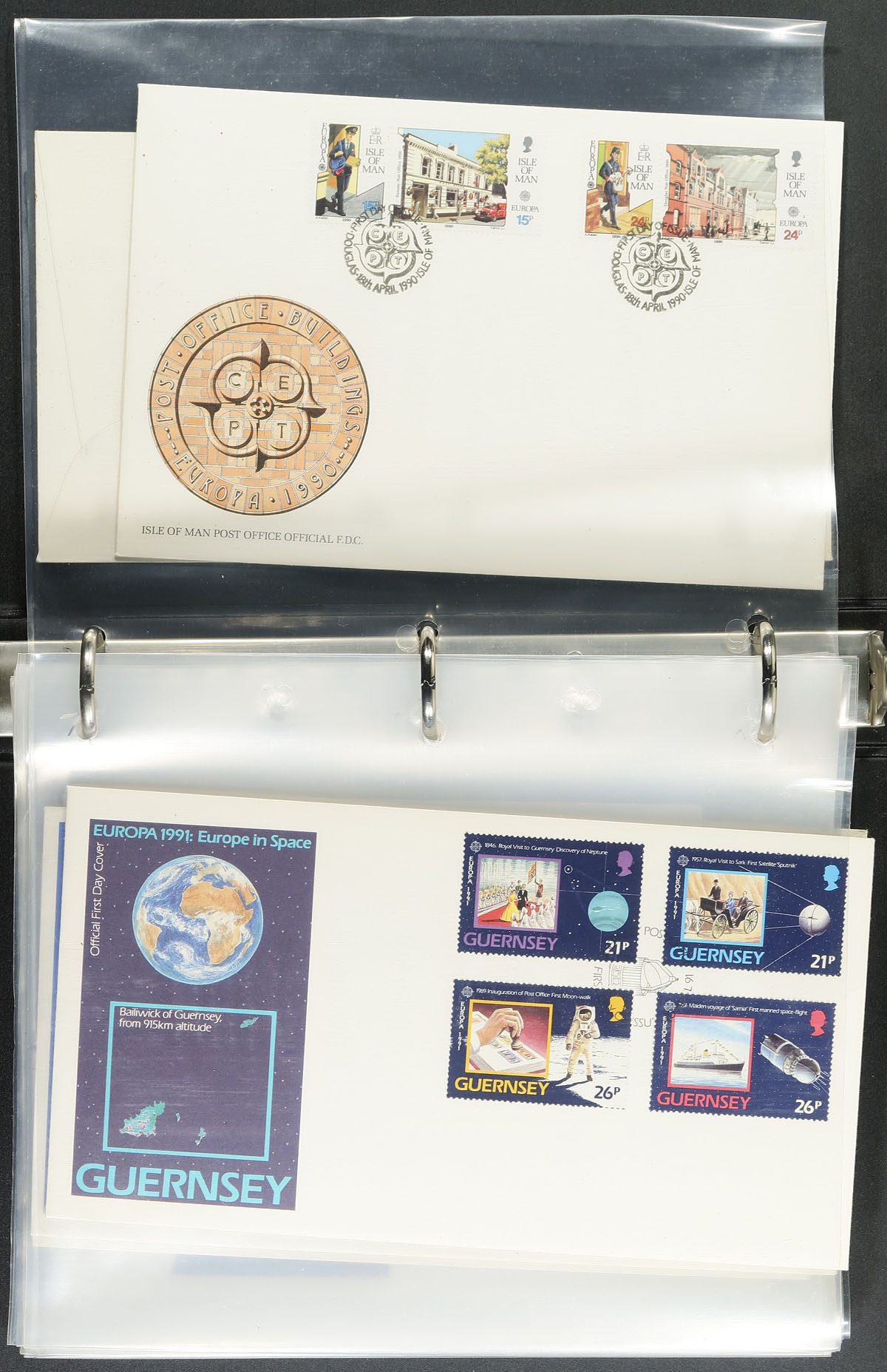 Europa First Day Cover annual collections produced by Fleetwood, which appear to be complete. Includes 3-tall specialty albums with 59 different 1978-1979 FDC's. Another duo with a different style of album (and different cachets) covers 1979 (30 FDC's) and 1980 (57 FDCs) - the album covers of these two are a bit rough. From a similar series, but with "silk" cachets are the 1985 and 1986 sets (134 different). The caboose of this lot is a small assortment of 1961-1992 FDCs and maxi-cards including some less common material. About 300 items in total, filling a bankers box. Original cost would have been easily US$1500.00. Estimate =