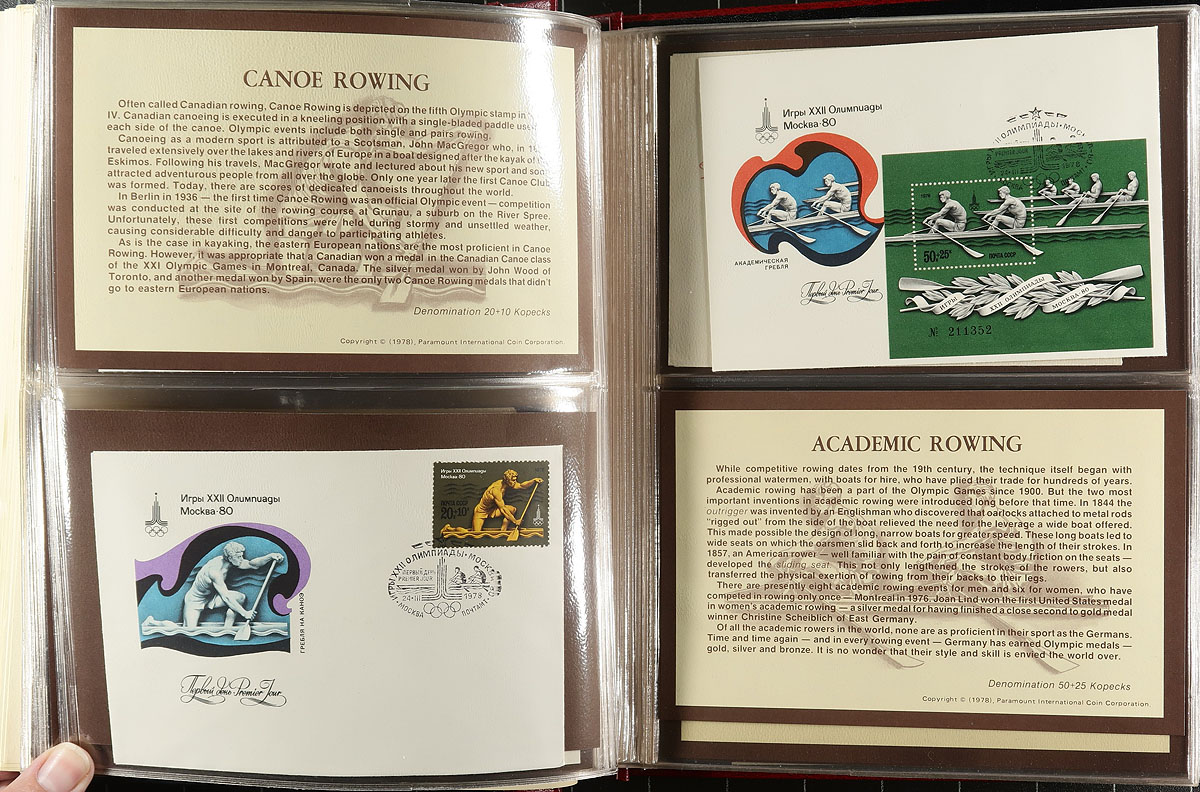 Five different topical collections in a bankers box, mostly First Day Covers. Stanley Gibbons-produced album for 1964 Shakespeare celebration, followed by a two-volume 1981 "Charles and Diana" Royal Wedding. Three Olympic Games are represented with 1980 Summer (Paramount), 1984 box collection (Fleetwood), 2000 Sydney (Australia Post Prestige Collection). Substantial original cost. Estimate =