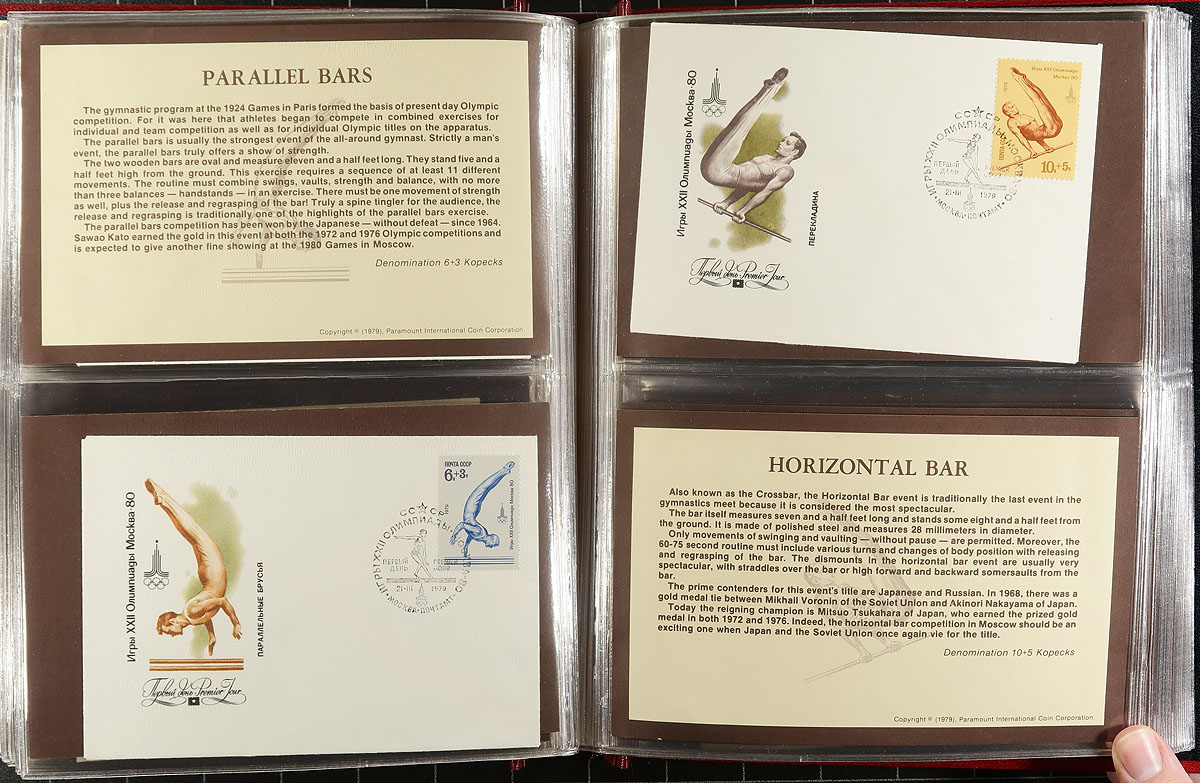 Five different topical collections in a bankers box, mostly First Day Covers. Stanley Gibbons-produced album for 1964 Shakespeare celebration, followed by a two-volume 1981 "Charles and Diana" Royal Wedding. Three Olympic Games are represented with 1980 Summer (Paramount), 1984 box collection (Fleetwood), 2000 Sydney (Australia Post Prestige Collection). Substantial original cost. Estimate =
