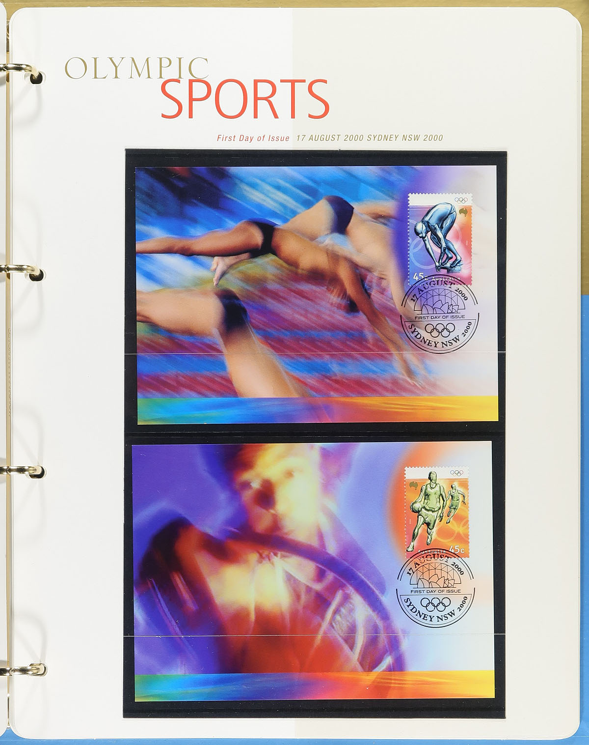 Five different topical collections in a bankers box, mostly First Day Covers. Stanley Gibbons-produced album for 1964 Shakespeare celebration, followed by a two-volume 1981 "Charles and Diana" Royal Wedding. Three Olympic Games are represented with 1980 Summer (Paramount), 1984 box collection (Fleetwood), 2000 Sydney (Australia Post Prestige Collection). Substantial original cost. Estimate =