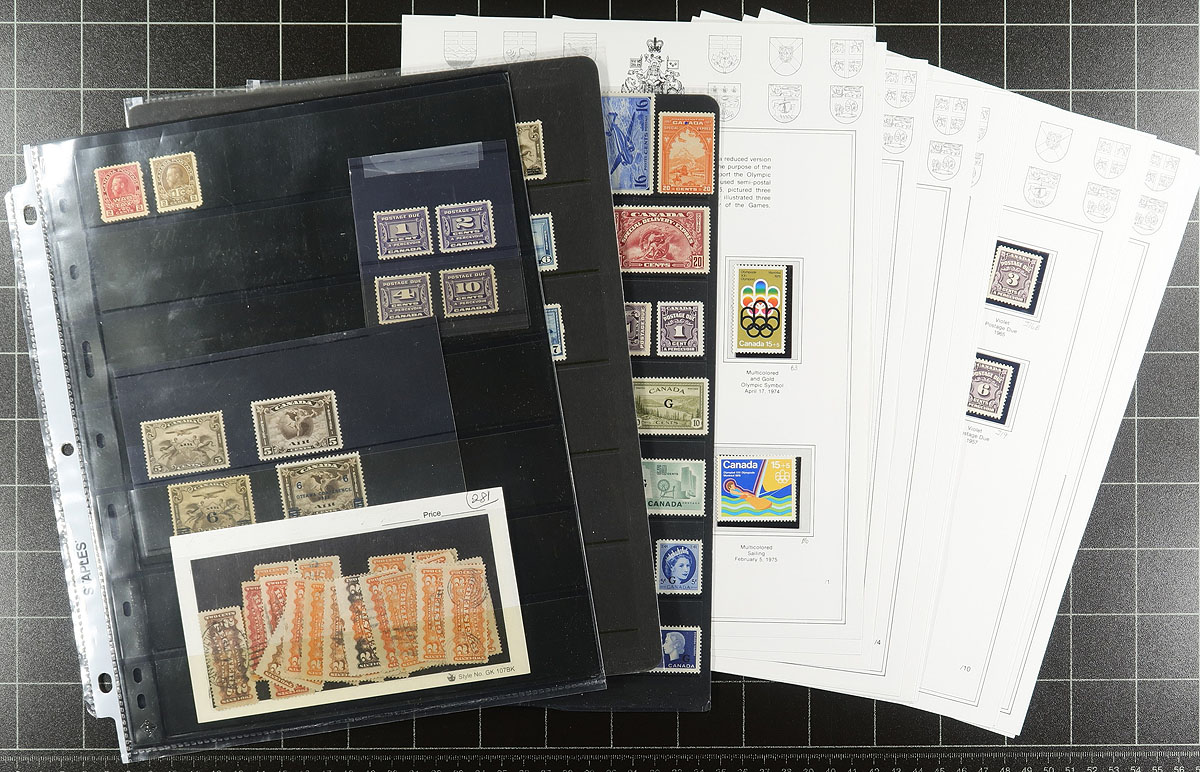 "Back of the Book" bundle: The balance of an estate with lots of value, but not much cohesion. In order of appearance, we saw mint War Tax duo, some early postage dues, some airmails, with duplication. An interesting card of 2c Registration stamps (all used, including cancels, shades and a couple of pairs). There are more mint officials and a couple of early 10c Special Delivery. There is a section of album pages with mint and used semi-postals airmail and postage dues (including 5 postage due meter tapes). Expect a wide range of condition. Estimate =