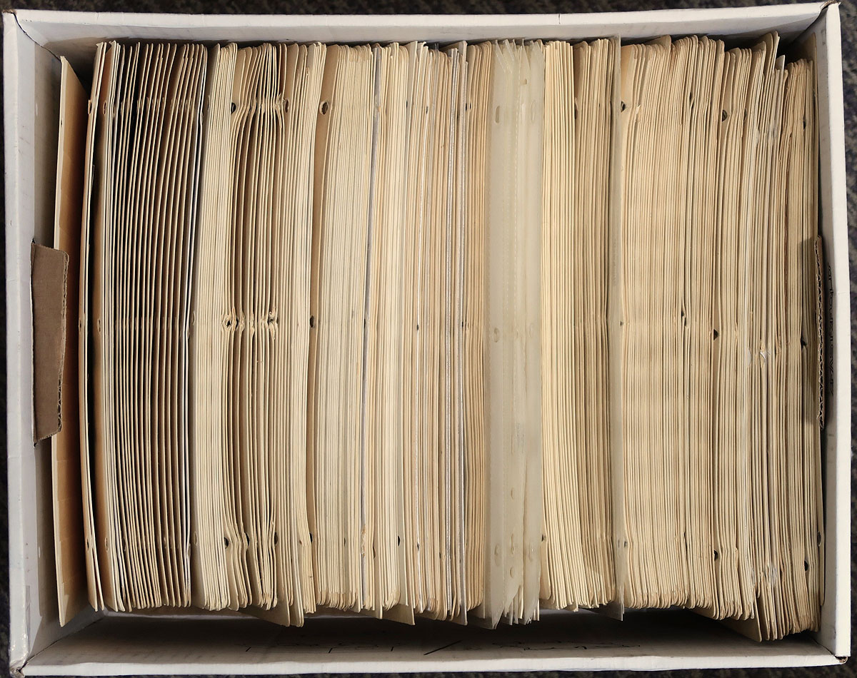 Used manila stockpages, 270 of them in a wide range of conditions, most have stamps in them, from a few to a few hundred. Obvious sections include Australia, Canada, Great Britain, United States and there is a fascinating group of pre-Elizabethan British Commonwealth. Overall, most are 20th century, with a bit earlier than that. Huge retail in the pages, lots of value in the stamps! Estimate based on the pages only. Estimate =