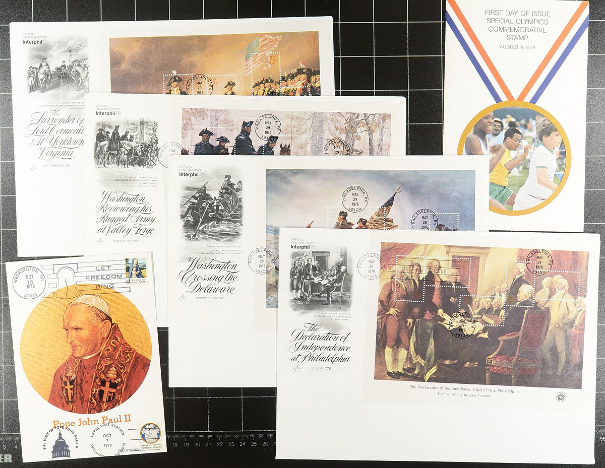 Accumulation of roughly 500 covers in a box, the vast majority being first day covers ranging from the 1940's to the 1980's, noting some private cachets, along with event covers, space covers, commercial covers (many from from the 1870's franked with the 3c Washington (Banknote perhaps) issue, paying the domestic rate), postal stationery, etc. A nice group for the cover collector, a few faults mostly with the commercial mail, overall fine to very fine. Estimate =